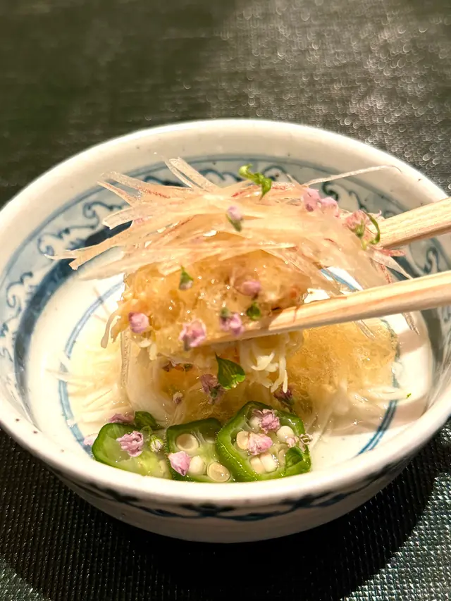 Newly opened sister shop of Kappo Roann fusing sushi with kappo cuisine. 10 counter seats and 3 tables on the side. Counter was fully seated on the night of our visit with Japanese diners conversing with Sonoda San. Server was incredibly friendly and attentive. To top it off, Sonoda San’s wife appeared around 9ish in a kimono to help with the service. Loved the vibe and ambience. Omakase menu from 7 pm to 9:30 pm and a la carte kappo menu from 9:30 pm to 2 am. While we were more interested to try dishes from the a la carte menu, we had no choice but to order the omakase menu as we were there around 7.Kegani to start. Delectably fresh and sweet.金時鯛魚Katsuo 鰹魚 and 羽太蓮根饅頭 My favourite of the meal. Piping hot and gelatinous to the bite. A dish of surprising flavours and textural juxtaposition🤯金目鯛 一夜干 with bitter melon in house fermented soy sauce熊本黒毛和牛『和王」Wagyu Beef Cutlets from Kumamoto of Kyushu Prefecture. Light breaded exterior and tender and flavourful interior.Sushi to follow. Chutoro and 梅色魚Iwashi and Tai 黑睦 and akamiSanma and uniThe most anticipated hour 9:30 came and we couldn’t resist ordering one item off their a la carte menu though we were full to the brim. Friend picked Creamy crab croquette. It was deliciously done.Overall Sonoda San’s strength lies in Kappo. For me, all otsumami, particularly the 蓮根饅頭,were off the charts delicious 😮💨😮💨😮💨 Sushi was fine but the shari was a bit too moist and vinegary for my taste. Most importantly the otsumami out shone them all. Will definitely return for the a la carte menu!!…查看更多