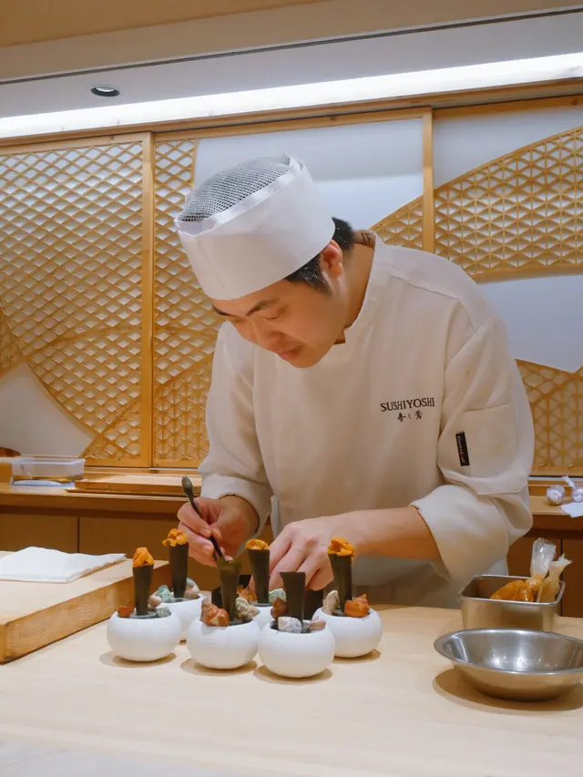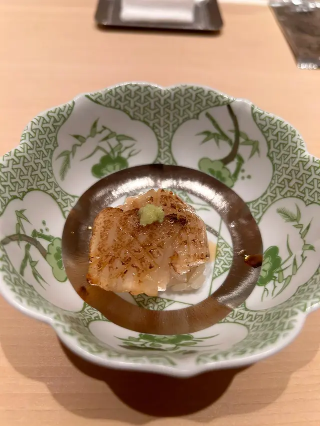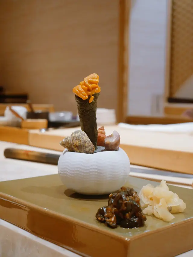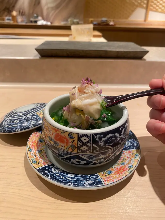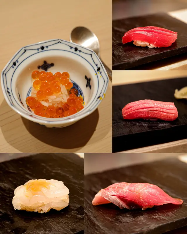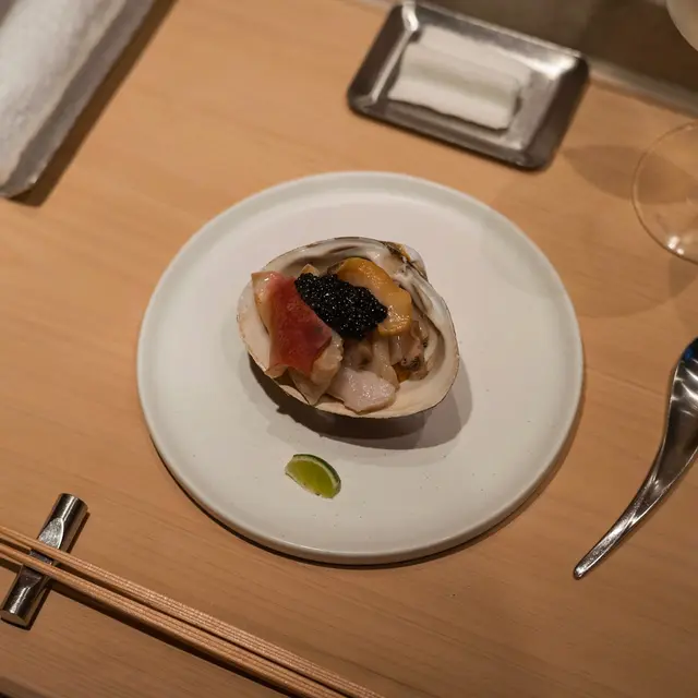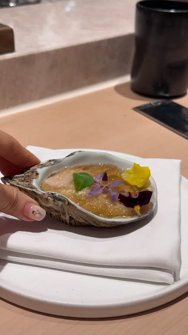 📍位置在尖沙咀金马伦道8号The Otto酒店1楼,位置还算好找。店内是日式极简原木风,一走进去,安静又舒适,让人瞬间放松下来,很有吃omakase的氛围。套餐里前菜的「小肌鱼配蛋黄紫菜」一上桌就惊艳到我了,小肌鱼色泽鲜亮,下面垫着的是混合了蛋黄酱的山药,代替了传统寿司饭,搭配上芥末籽,一口下去,酸酸甜甜,超级开胃 !「日本圣子贝」也很不错,刺身口感筋道,特制青瓜酱增加了浓稠感,又添了一丝清爽。寿司环节更是精彩,每一贯都能感受到师傅的用心。「带子」肉厚嫩滑,入口即化;「深海池鱼」厚切吃起来超满足,胶状口感很特别;「马粪海胆」据说是当天空运来的,师傅给挖了满满一大勺,鲜甜可口,幸福感直接拉满!最后的甜品「柠檬奶冻慕丝」为这顿饭完美收尾,上层丝滑的柠檬慕斯,下层弹嫩奶冻,再挤上柠檬汁,酸酸甜甜的,超解腻 。全程师傅都很热情,会细心介绍每一道食材的来源和特色,边吃边涨知识。如果来香港想吃正宗又有创意的日料,寿司芳真的强烈推荐!…查看更多