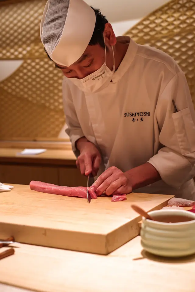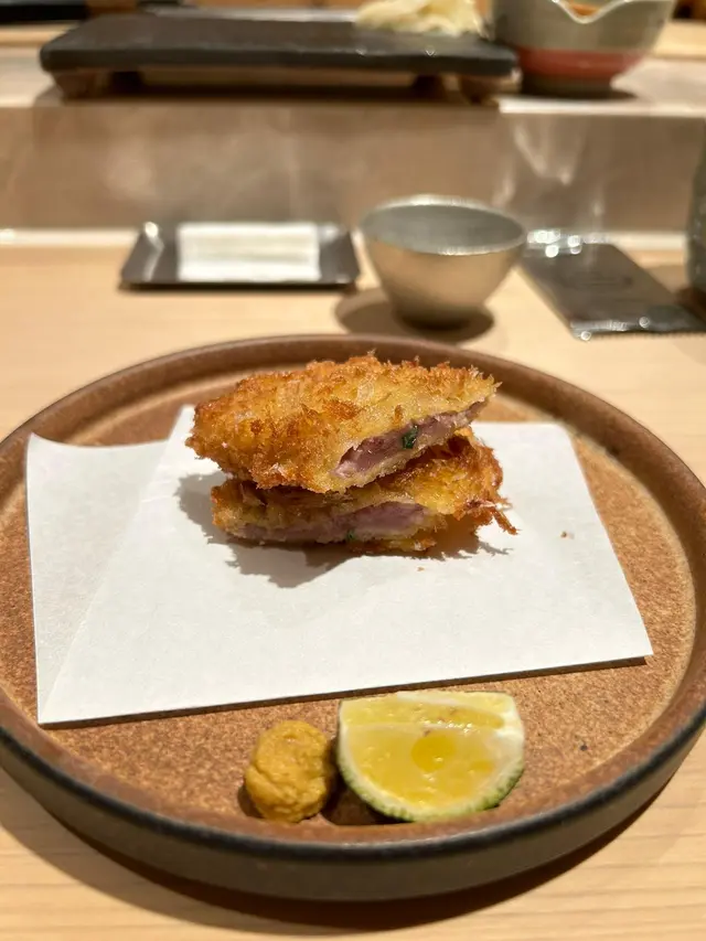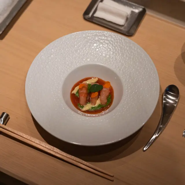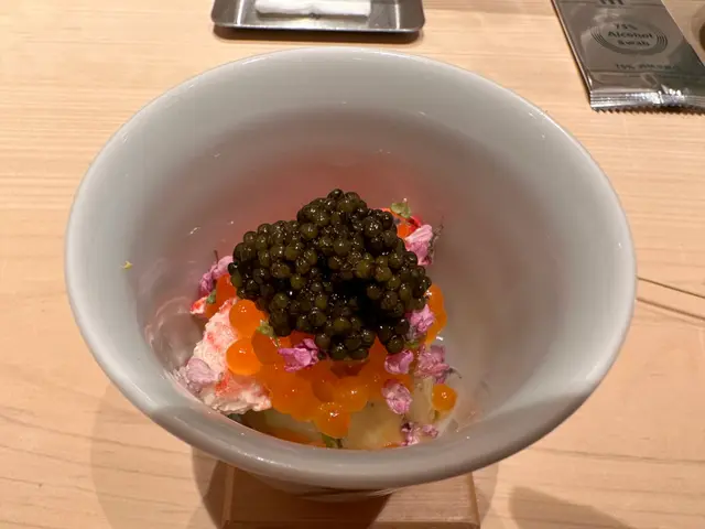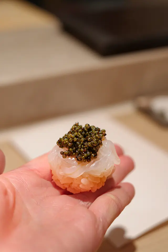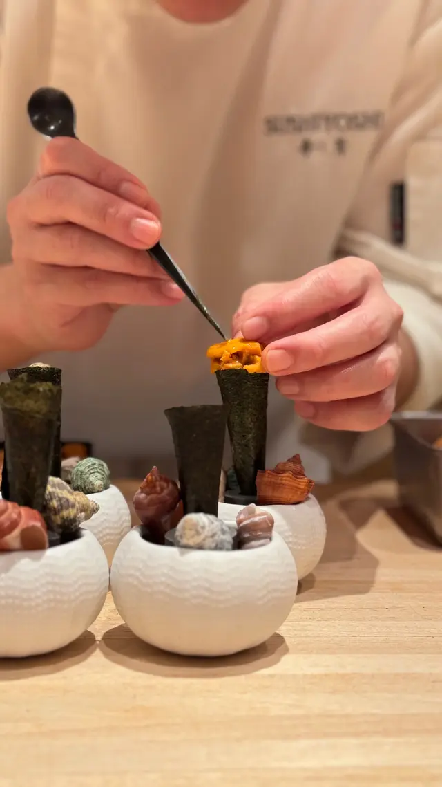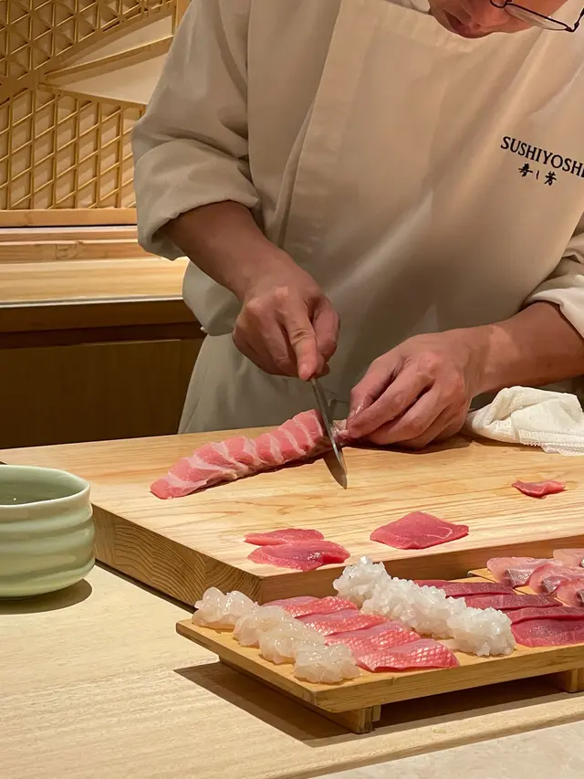 📍位置在尖沙咀金马伦道8号The Otto酒店1楼,位置还算好找。店内是日式极简原木风,一走进去,安静又舒适,让人瞬间放松下来,很有吃omakase的氛围。套餐里前菜的「小肌鱼配蛋黄紫菜」一上桌就惊艳到我了,小肌鱼色泽鲜亮,下面垫着的是混合了蛋黄酱的山药,代替了传统寿司饭,搭配上芥末籽,一口下去,酸酸甜甜,超级开胃 !「日本圣子贝」也很不错,刺身口感筋道,特制青瓜酱增加了浓稠感,又添了一丝清爽。寿司环节更是精彩,每一贯都能感受到师傅的用心。「带子」肉厚嫩滑,入口即化;「深海池鱼」厚切吃起来超满足,胶状口感很特别;「马粪海胆」据说是当天空运来的,师傅给挖了满满一大勺,鲜甜可口,幸福感直接拉满!最后的甜品「柠檬奶冻慕丝」为这顿饭完美收尾,上层丝滑的柠檬慕斯,下层弹嫩奶冻,再挤上柠檬汁,酸酸甜甜的,超解腻 。全程师傅都很热情,会细心介绍每一道食材的来源和特色,边吃边涨知识。如果来香港想吃正宗又有创意的日料,寿司芳真的强烈推荐!…查看更多