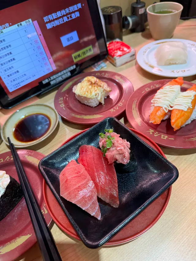 富士產熟螢光魷魚軍鑑:個人不太喜歡這款壽司,樣子是挺有朝氣,眉飛色舞般,看來亦很足料,但熟成就沒甚麼特別香味,有咬口,但說不出個所以然來,跟壽司飯感覺好像分開,這比較像小食下加了一糰飯作飽肚之用,當中設計和理念我都看不太懂,是不難吃的,喜歡吃螢光魷魚的人可能視為珍寶,有興趣的人也可一點試個究竟,說不定覺得很驚喜。味道方面是沒有腥味或臭味,但因為是熟成,又涼涼不熱的關係,也說不上它是否新鮮,但打卡是挺漂亮,亦很有特色的。…查看更多