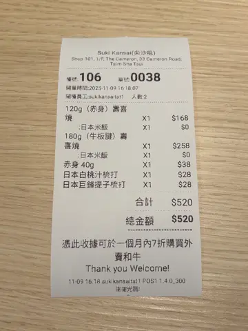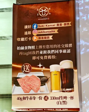尖沙咀嘅 Suki Kansai 系近年大热🔥嘅寿喜烧专门店,因为佢哋每一款都用上🇯🇵北海道十胜和牛🥩,肉质鲜嫩到爆,而且价钱十分之实惠💰,绝对系平靓正!今次我有幸食到🤩限量版嘅日本黑毛和牛🏯牛板腱寿喜烧套餐,😎每日得18份,系售完即止架!呢个系每只牛🐂只会生产出1%嘅板腱部位,珍贵程度💎就如黄金咁稀有✨。佢肉质好诱人😋,中间更有一条嫩筋🥩,鲜嫩到不得了,🥰肌理细致到无可挑剔。加入寿喜烧嘅汤汁🍲,只需轻轻涮几秒⏱️就食得,咬落去有少少🤏爽口,牛肉嘅浓郁风味喺个口腔度👅弥漫开去,点埋生嘅兰王蛋浆🥚食真系好正😍!另外精品赤身🥢寿喜烧套餐采用日本产🇯🇵黑毛A4+和牛嘅赤身部位,🥩肉质爽脆,带住温和嘅脂香💫,入口软嫩唔会柴,绝对系😆怕肥腻人士嘅福音。每个套餐都配埋蔬菜盘🥬,有好多款新鲜青菜同🍄菇等紧你涮🌱。另外仲可以拣饭🍚或者乌冬🍜作为主食,寿喜烧配饭真系大满足👍。而乌冬软身有弹性,浸咗啲高汤更加美味🤤。甜品就系👏黄豆蕨饼同埋🍵抹茶蕨饼,冰冷❄️嫩滑,一扫饱腹感,抹茶嘅香气够足,完美呀😍。饮品方面🍹,我哋拣咗日本白桃汁梳打🍑同埋日本巨锋提子梳打🍇,果香十足,清爽无比,同寿喜烧嘅浓郁完全系绝配🥰。呢度仲有个超正嘅优惠🎉,只要张你影得靓靓嘅食物相片📸上传至社交媒体,tag 埋 Suki Kansai,再同佢哋嘅同事👌确认一下,就可以免费得到40g和牛赤身一份🎁或者330ml生啤一杯🍺(白/黑任选)。凭收据🧾仲可以系一个月内🗓️七折购买外卖和牛添🤩。…查看更多