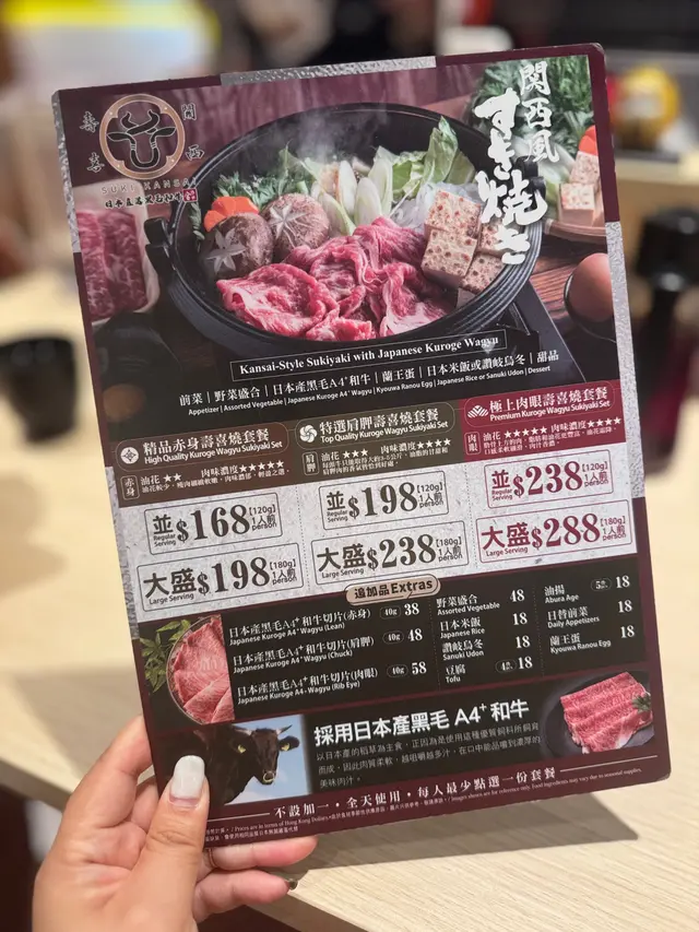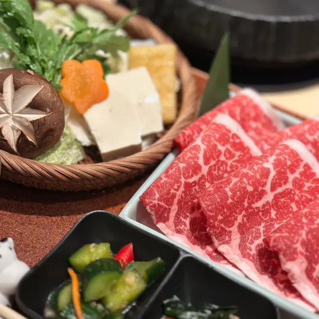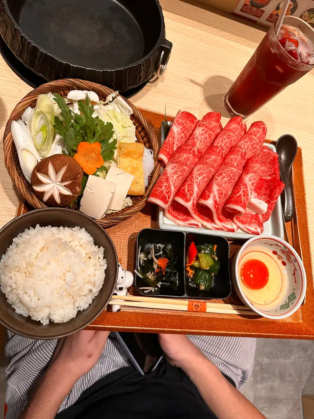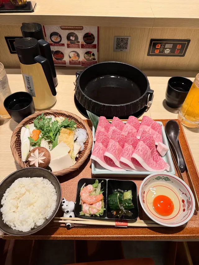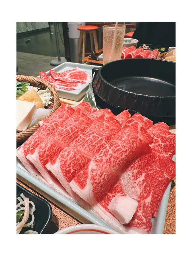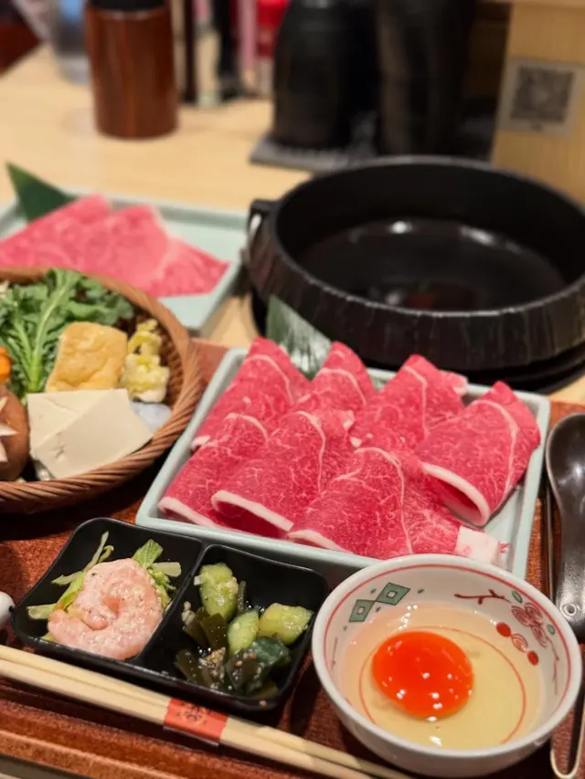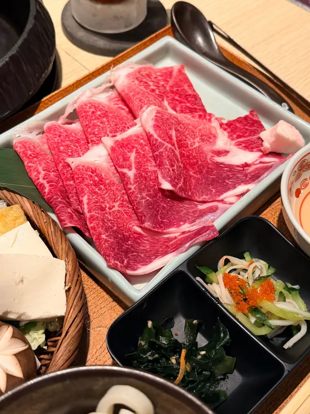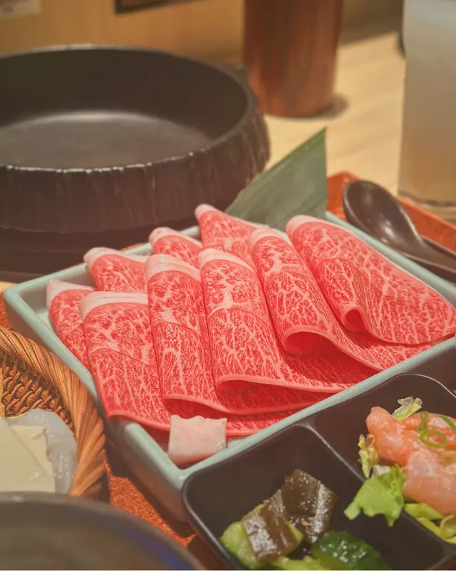 餐廳主打關西風壽喜燒,師傅會喺你面前用牛脂起鑊,先將和牛煎香,再加醬汁同其他配料,成個過程都係一場視覺同味覺嘅享受!今次食咗啲咩好西?