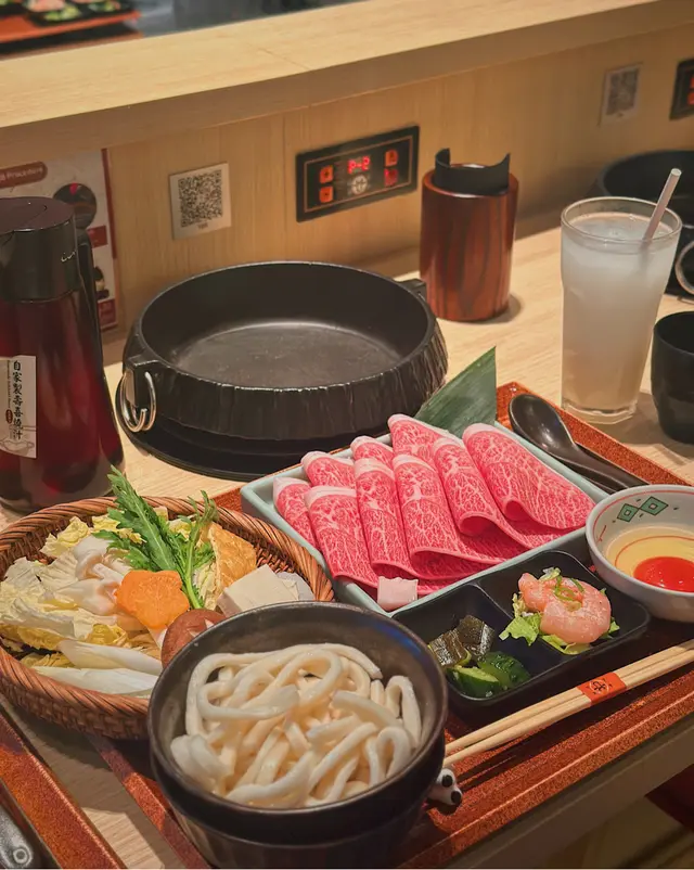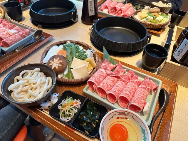 配日本米飯:食壽喜燒點少得一碗靚飯?佢哋嘅日本米飯粒粒晶瑩飽滿,索晒啲牛肉汁同壽喜燒汁,簡直係人間極品!配讚岐烏冬:食完肉,梗係要淥埋烏冬啦!煙韌彈牙,掛汁力一流,將壽喜燒嘅精華完全吸收晒,食到最後一啖都係享受!