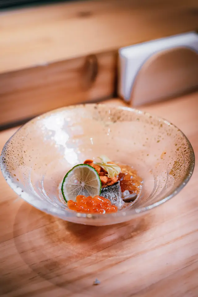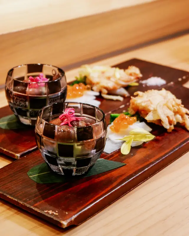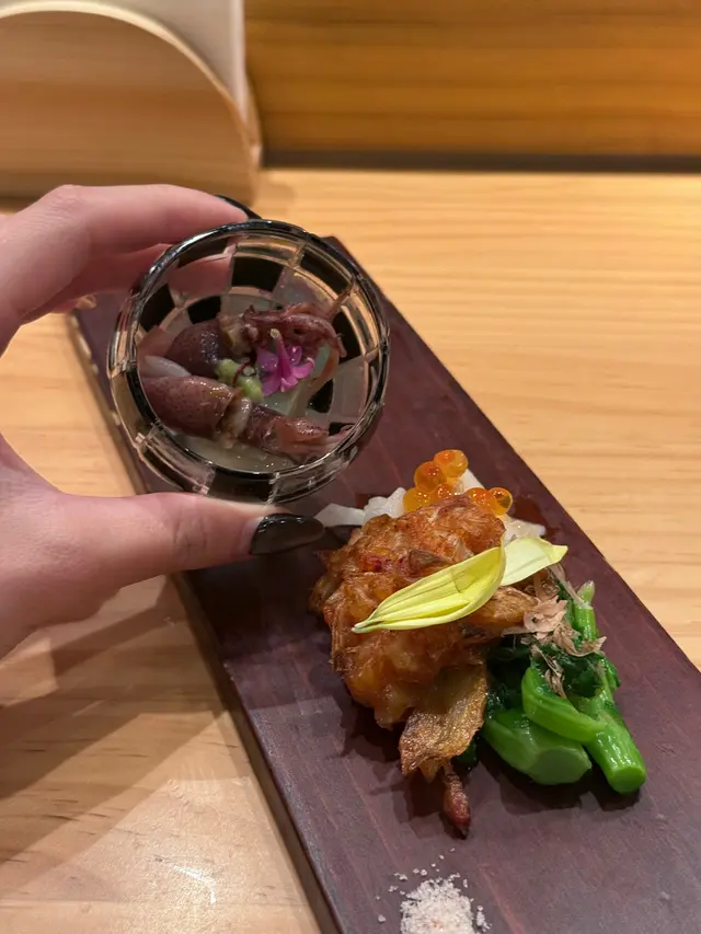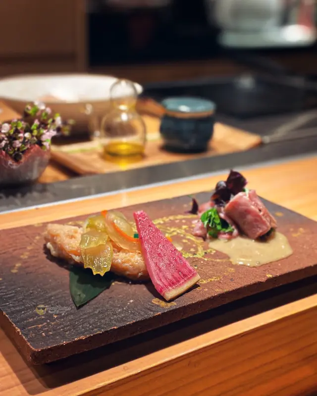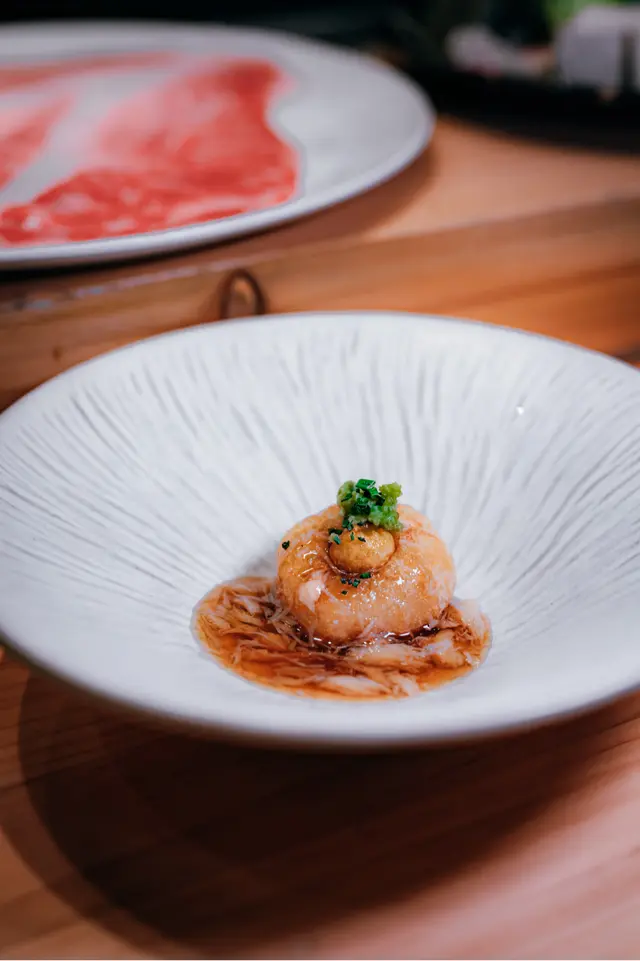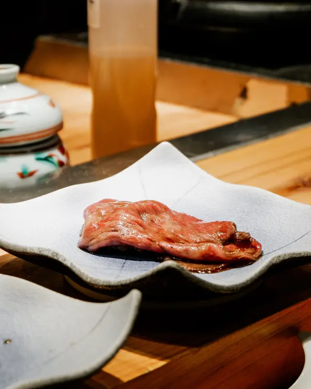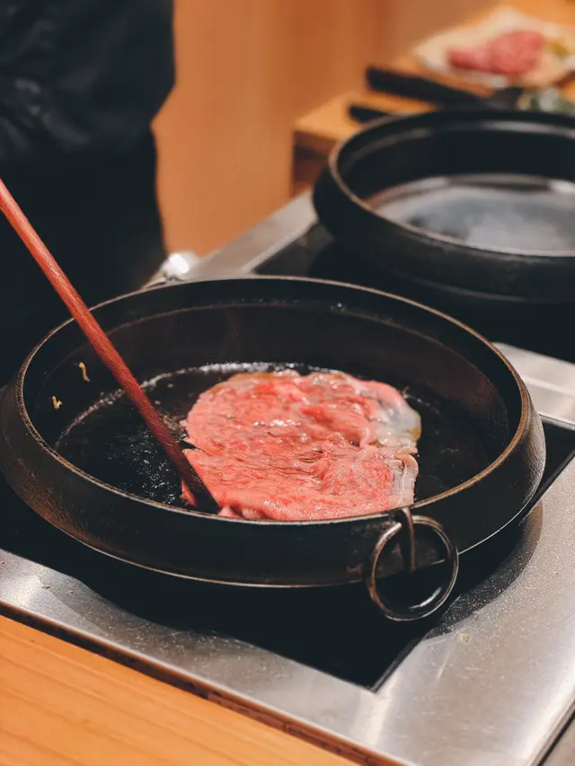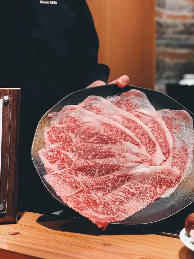 尖沙咀棉登徑嘅「壽喜燒 伊勢熊」,由日本福岡縣出身嘅主廚久家弘一坐鎮。久家主廚曾於日本多間五星級酒店任職,以自家研製壽喜燒醬汁呈現屬於伊勢熊風味的「現煮」壽喜燒。坐吧枱位仲可以睇到廚師即場料理,氣氛好輕鬆。.主打SUKIYAKI Set GAKU定價$680,六道菜式由前菜、蒸物、兩款和牛壽喜燒、日本野菜、昆布雞蛋飯到甜品一應俱全。前菜用上海膽、三文魚子、水雲打開味蕾;蒸物熱呼呼上枱,味道細膩。壽喜燒部份可以試到兩款和牛——京都姬牛同鹿兒島野崎牛。京都姬牛肉質軟稔細緻、肉味濃郁;野崎牛油花分佈勻稱,入口即化但又唔覺膩。每塊肉都可以先食原味,再試配松露醬、柚子或沖繩辣椒絲,味道層次豐富。.必試嘅仲有店家最近主打嘅海膽魚子醬和牛壽司。高級食材堆疊得恰到好處,一口食到和牛嘅香、海膽嘅滑同魚子醬嘅鹹香,非常過癮。野菜方面,用上多款日本直送野菜,包括靜岡Amela蕃茄、京都燒豆腐同山形冬菇,每樣都吸滿壽喜燒汁。最後嘅昆布雞蛋飯由北海道夢美人米及糯米混合煮成,飯粒掛滿甘甜醬汁,和牛肉配上兵庫縣雞蛋打成嘅雲朵蛋泡,滑得嚟仲有層香氣。甜品是靜岡蜜瓜大福,清甜收尾好舒服。價錢以呢個質素嚟講算抵食。特別鍾意佢席前現煮嘅形式,睇住油脂慢慢融化嘅過程真係有儀式感。.晚餐套餐SUKIYAKI Set GAKU 💲680✿ 前菜二品✿ 蒸物✿ 和牛壽喜燒(二片)✿ 日本野菜✿ 昆布飯・雞蛋蓋飯✿ 甜品及✿ 海膽魚子醬 和牛壽司 $250…查看更多