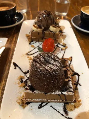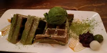 大概8:00左右到,平日晚上人不多,店内计埋我地只有3台客,可能时间尚早吧呢间店几年前已食过,当时已经好钟意,但因太大碟,所以好多时食完饭都食唔落,就没再食今晚的晚餐比较轻盈,肚仔仲有好多位,就黎左食啦~~~绿茶窝夫,好正呀!未食已闻到好香好香,切落去已觉得好松化,夹饼入面仲有绿茶馅,一点都唔漏;绿茶雪糕甜度刚刚好,配上碟边的红豆和白玉,仲有绿茶啫喱和两片柑?橙?,口感好丰富!细食的我,食下食下竟然食哂!男朋友食伯爵茶窝夫,佢仲犀利,极速食哂,我试左几啖,茶味很香,令人忍不住一口接一口!很满足的甜品,我地两个都捧住个肚走。不过真系要肚仔有位先好黎食,因为真的很饱肚。…ดูเพิ่มเติม