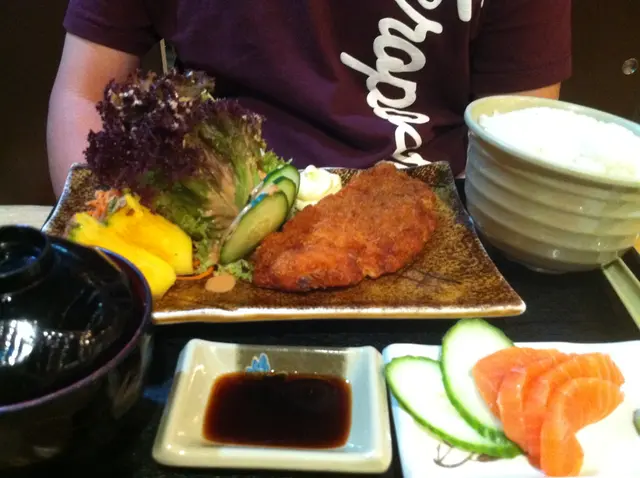 很久沒有食過外野手, 突然想起, 於是去食個午餐先 我叫了一份魚生飯餐, 包一碗麵豉湯, 大大碟的飯, 面頭鋪滿一片片厚砌三文魚, 大約有八片, 幾抵食 我的朋友叫了一份魚生沙律, 包一碗麵豉湯, 及一碗麵, 超抵食呀無加一, 四十幾蚊一個SET, 我見其他人叫牛肉窩set lunch 都幾好樣呀, 下次試吓先查看更多