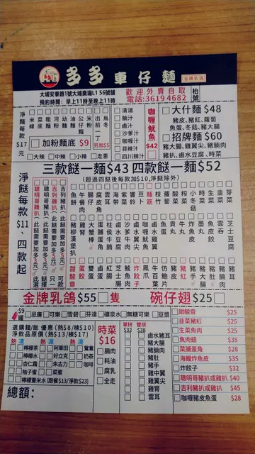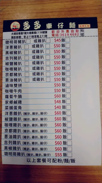 多多車仔麵 (大埔) 网址: https://s.openrice.com/QrLS0tdi900 地址: 香港大埔安泰路1號大埔廣場地下56號舖 电话: +852 36194682