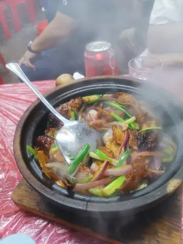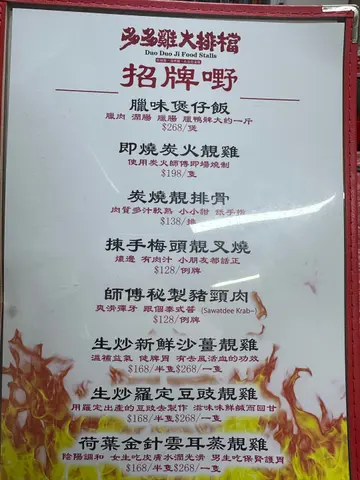元朗有好多大排档,但我比呢间嘅招牌烧鸡吸引咗!! 一定要黎食!夏天食大排档有风味之余最紧要有冷气,呢到有2层室内,都有冷气,可以食得舒舒服服🥢炭火烧鸡基本上每枱都必点! 建议一入座就叫左先,因为即叫即烧,要等30分钟~原只上枱,好有睇头!! 一上枱已经闻到阵阵烧烤香味,鸡皮烧到金黄色,仲有啲微微焦痕,带少少油光,卖相超有食欲! 啲肉仲系嫩滑多汁,冇焗到干晒。鸡皮脆卜卜,咬落去先有炭香,跟住啲鸡肉鲜味就爆晒出嚟,肉汁渗晒出嚟,每咬一啖都好满足,再点啲淮盐,味道即刻再提升🥢西兰花炒鲜鱿西兰花炒得啱啱好,保持到爽脆同水份,咬落去有啲“咔嚓”声。鲜鱿片厚薄适中,唔会嚡口,弹牙又带鲜味。成碟菜用咗啲蒜同清鸡汤快炒,味道唔会太重,啱啱好突出晒材料本身嘅清甜同鲜味🥢啫啫鱼头煲成煲热辣辣,香气扑鼻,啲鱼头件件煎到金黄色,外皮微微焦香,仲渗住啲惹味酱汁,煲底铺满晒蒜头、豆豉、干葱、辣椒粒同埋葱段,全部炒到香气十足,鱼头皮脆肉滑,鱼肉厚实又多胶质,食落啖啖黏嘴,送白饭一流…查看更多