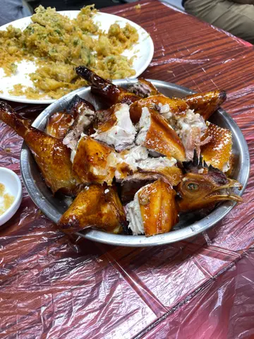 元朗有好多大排档,但我比呢间嘅招牌烧鸡吸引咗!! 一定要黎食!夏天食大排档有风味之余最紧要有冷气,呢到有2层室内,都有冷气,可以食得舒舒服服🥢炭火烧鸡基本上每枱都必点! 建议一入座就叫左先,因为即叫即烧,要等30分钟~原只上枱,好有睇头!! 一上枱已经闻到阵阵烧烤香味,鸡皮烧到金黄色,仲有啲微微焦痕,带少少油光,卖相超有食欲! 啲肉仲系嫩滑多汁,冇焗到干晒。鸡皮脆卜卜,咬落去先有炭香,跟住啲鸡肉鲜味就爆晒出嚟,肉汁渗晒出嚟,每咬一啖都好满足,再点啲淮盐,味道即刻再提升🥢西兰花炒鲜鱿西兰花炒得啱啱好,保持到爽脆同水份,咬落去有啲“咔嚓”声。鲜鱿片厚薄适中,唔会嚡口,弹牙又带鲜味。成碟菜用咗啲蒜同清鸡汤快炒,味道唔会太重,啱啱好突出晒材料本身嘅清甜同鲜味🥢啫啫鱼头煲成煲热辣辣,香气扑鼻,啲鱼头件件煎到金黄色,外皮微微焦香,仲渗住啲惹味酱汁,煲底铺满晒蒜头、豆豉、干葱、辣椒粒同埋葱段,全部炒到香气十足,鱼头皮脆肉滑,鱼肉厚实又多胶质,食落啖啖黏嘴,送白饭一流…查看更多