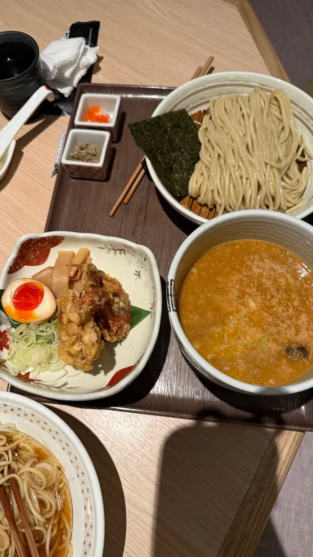 食咗豚鴨沾麵,一碗麵最基本嘅係要熱,佢冇,其實係等咗好耐先至有,但係佢都係唔熱,佢係有個蠟燭喺面下面熱住個面嘅,不過係裝飾用,完全冇令到啲面熱,麵唔熱真係扣晒分,湯底係好味嘅,有豬同鴨嘅味,個味幾鮮,肉都係半肥瘦,糖心蛋都係半融狀態,面都係好煙韌,又咬口,但係我接受唔到一碗沾麵係唔熱,又話米芝蓮,又見好多好評,所以就完。服務就都還好,侍應都會定期過嚟幫手加水,不過其實店面嗰日都唔係多人,我都唔明點解個麵可以唔熱查看更多