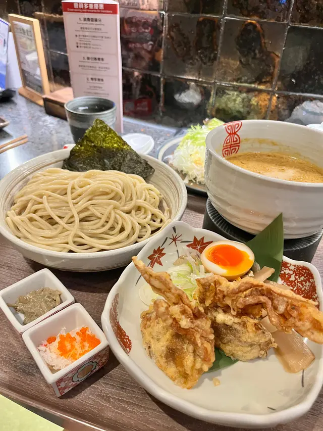 喺K11行完街見到呢間咁多人排隊就諗住試吓,點知又真係有佢排隊嘅道理喎#極上蟹皇沾麵 蟹皇沾麵真係好啱鍾意食蟹嘅朋友仔,首先成個蟹除咗蟹湯之外,仲有一隻炸軟殼蟹同埋蟹膏醬仲有蟹肉,軟殼蟹炸得好酥脆,配埋七味粉咁食就更加惹味,而啲面煮到啱啱好,質感好彈牙,將啲麵浸落蟹湯度令到每一條面都掛滿蟹湯,令成碗麵都充滿蟹香味,忍唔住飲埋啲湯#黑松露沾麵 一拎上嚟已經聞到好香嘅黑松露味,啲炸菇外層炸到金黃酥脆,內裡仲保持住鮮嫩嘅口感,咬落去嗰陣仲會發出清脆嘅聲音,令人食指大動,而啲麵都吸收咗松露醬汁,味道層次豐富,一路食一路聞住黑松露嘅獨特香氣都幾正#蟹肉薯餅 薯餅外脆內軟,搭配新鮮蟹肉,整體都幾特別,點埋醬汁去食更加提升咗整體嘅風味#富士蘋果生芝士蛋糕 富士蘋果生芝士蛋糕完美結合咗新鮮的富士蘋果和香滑的芝士,蛋糕底部唔係好爽脆嘅曲奇餅底,所以令到整體嘅感覺好一致,入口即溶#福岡縣柚子芝士蛋糕柚子芝士蛋糕底部鬆軟,搭配滑順的芝士餡,口感非常柔和。不過就略嫌呢個蛋糕甜得滯,需要飲返杯嘢解一解膩查看更多