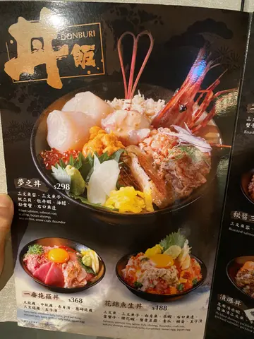 店内装潢走日式简洁风格,主打各款创意海鲜丼饭,所有刺身皆由日本鱼市场新鲜直送。店内亦供应熟食的丼饭及串烧等。