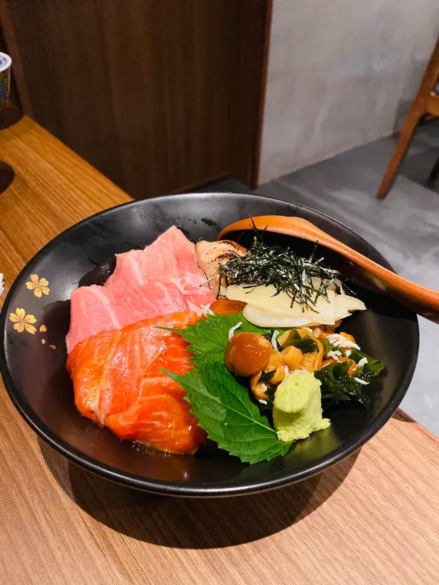 𠮶日返工见完客,行过香港大学𠮶边,见到有间装修几靓嘅日本餐厅,见唔使排队咪入去试吓啰,点知有几有惊喜🤩🤩餐厅内里装修典雅,近厨房𠮶边有吧枱,可以见到当日最新鲜推介嘅食材。我哋叫咗两个迷你丼饭,另外叫咗个火锅,加埋两串串烧,仲有一个小食。丼饭用了有吞拿鱼蓉、带子等食材,食材好新鲜👍🏼👍🏼更加令人惊艳嘅系呢度嘅山葵系鲜磨,唔系坊间沟粉个种,入口唔会攻鼻!至于串烧方面,我哋叫咗烧鸡翼同埋葱烧鸡串,鸡翼火候控制得啱啱好,外皮香脆,内里Juicy,葱烧鸡肉个烧汁不油腻,仲食到食菜嘅原味火锅入边有唔同嘅海鲜,有三文鱼带子生蚝鲜虾,每一款都系刺身等级,另外有少少唔舍得将佢哋做火锅配料🤣🤣小食我哋叫咗蟹粉豆腐,真材实料,鲜美无味!呢度嘅嘢食精致美味,系稿赏自己嘅好地方🤩…查看更多