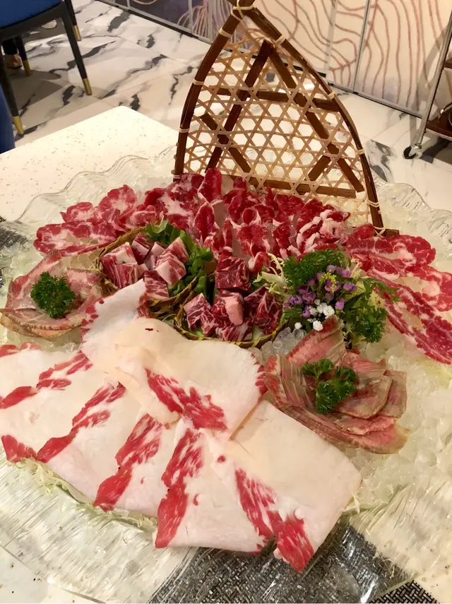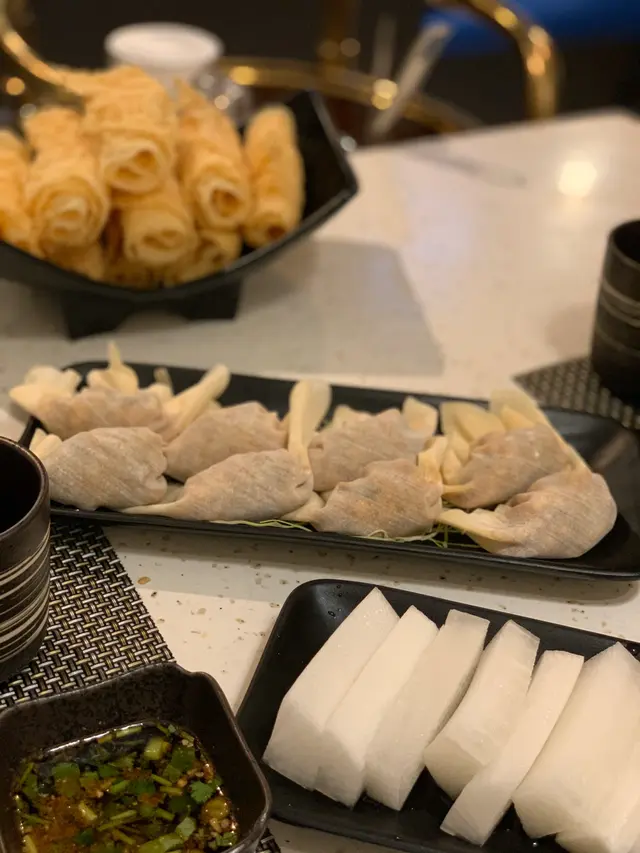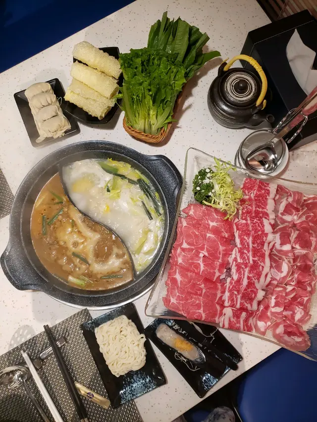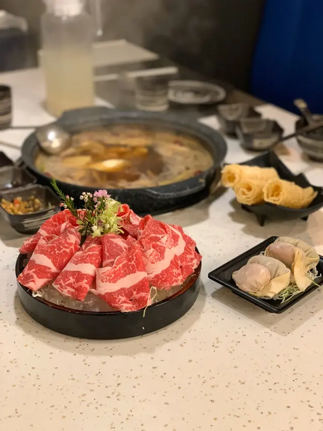 約咗朋友去尖咀打邊爐,佢地話見啲湯底好吸引,所以就揀咗呢間!地方都坐得幾舒服,都幾多梳化位!我地揀咗個最貴嘅鍋底!金湯腿翅鍋 !唔鐘意用翅嘅話,可以轉做花膠!個湯底好大鍋!個湯好重金華火腿味!入面有好多,仲有大大舊金華火腿骨,另外仲有半隻雞!個湯底真係好正!打邊爐點可以無牛肉!直接叫咗牛肉牛魔王拼盤,入面已經有4種牛,唔洗再獨立叫!有本地牛、牛胸爽、安格斯牛肉粒、牛脷!4款都好食,牛舌同牛胸爽都好香,牛肉粒同本地牛都幾重牛肉味!大大盤牛用黎影相真係好啱!其他野食仲叫咗份黑豚雲吞王併黑松露帶子餃,每樣要半份試下!黑松露帶子餃同雲吞王兩樣都好巨型!半份有4隻!兩款都皮薄餡靚!黑松露帶子餃餃皮好薄,包咗帶子、豬肉、黑松露喺入面,好有口感同好,好香松露味!黑豚雲吞王一樣好圓好大粒,有大大隻蝦喺入面!另外仲有啲豬肉餡!野飲就叫咗紫貝天葵,好似健康過汽水!而且酸酸甜甜,開胃又解渴!查看更多
