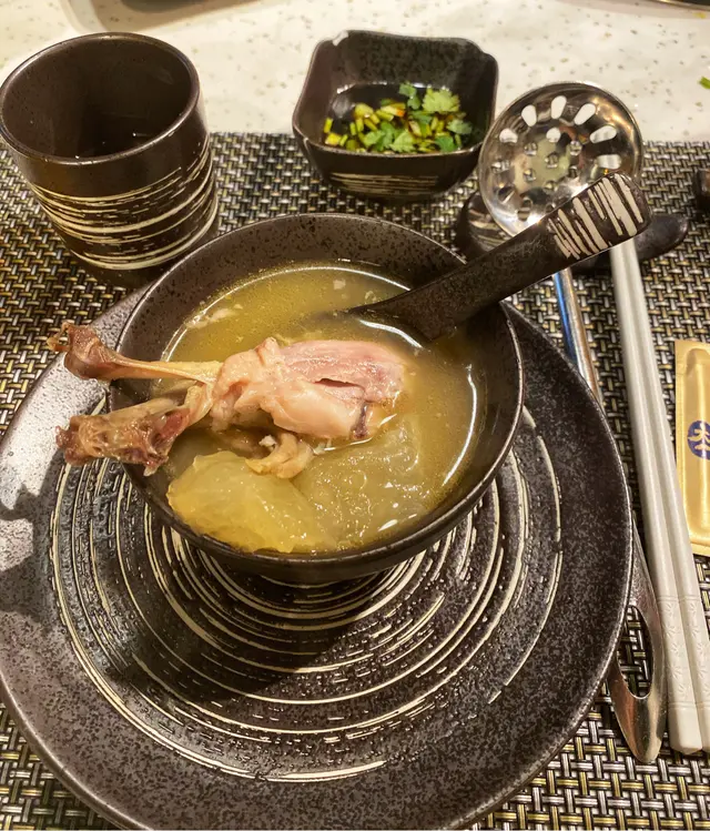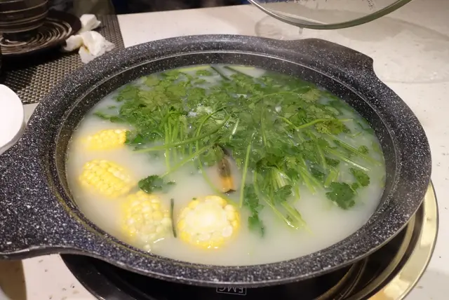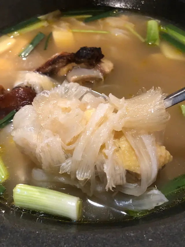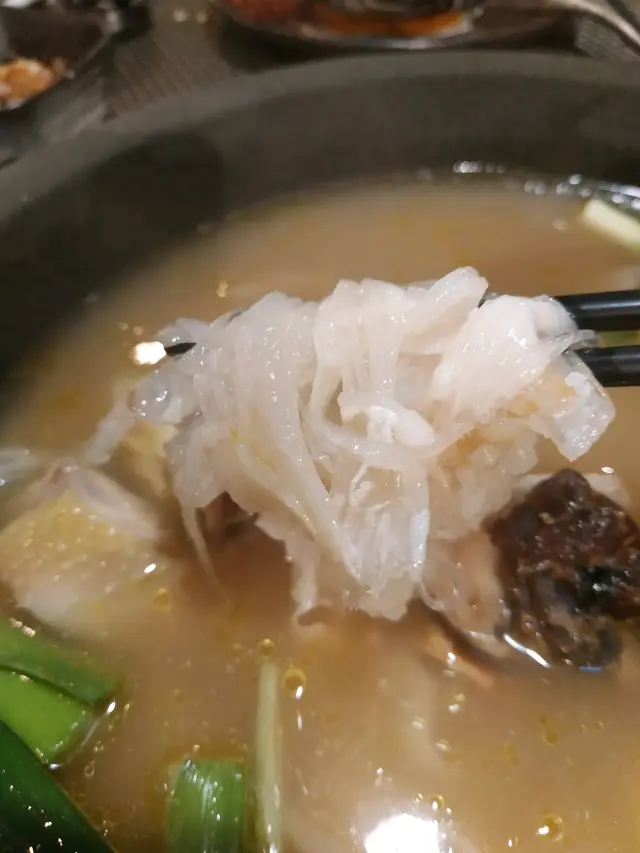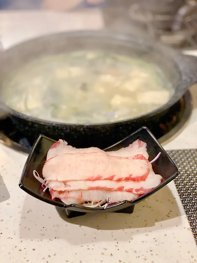 一坐下,侍應就問我飲什麼,有薏米水或紫貝天葵,我點了薏米水,不會很甜,甜度剛好。火鍋的精髓在於湯底,看到餐牌上推薦金湯腿翅鍋,價值$399一個湯底,眾多湯底中這個湯底是最貴的,一般湯底都是一百多元而已,究竟這個湯底有什麼特別?真的值這個價錢?侍應又高度推介,好,一於試試吧!這個湯底的重點:魚翅,毫不欺場,魚翅超級多,而且都是一大片一大片的,好像吃極都吃不完般,真的不後悔點了這個湯底,超值!有兩舊拳頭般大的火腿骨,火腿的味道慢慢滲入湯裡,令湯底的味道昇華了。湯底除了魚翅,還有很多雞件,雞肉都很滑嫩。足料魚翅、火腿、雞塊熬成的湯,難怪湯底那麼鮮甜!另外我還點了一份花膠,這裡的花膠都是花膠筒,好驚喜呀,因為在外面用膳比較少吃到花膠筒,都是超大塊,有大半隻手掌般長,好爽口,加上索曬湯底的味道,正,好滋補養生呀!還點了帶子片,都好爽口!總括來說,這個湯底我超級滿意,湯底超足料,既名貴又進補!我們忍不住不停喝湯底,最後需要加湯才能吃火鍋🤣🤣🤣另外要讚的是這店好貼心,鄰桌的女生怕冷,竟然有披肩借給她,實在是很細心👍🏻查看更多
