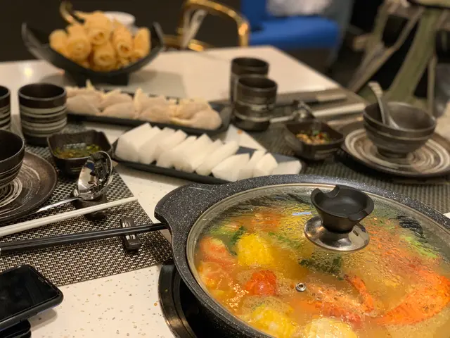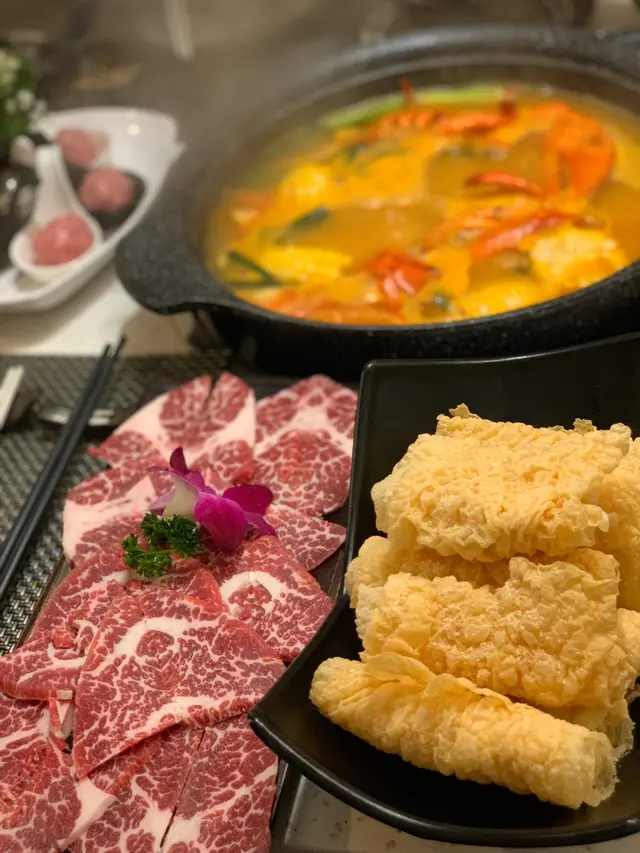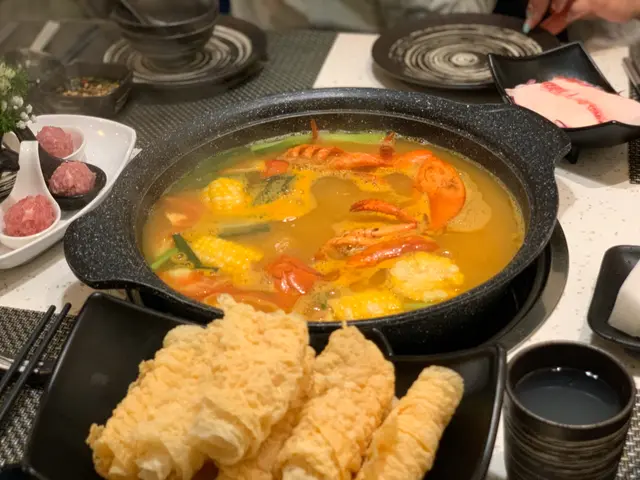 一上鍋已經見到湯底橙澄澄🧡 店員提醒我地可以先飲頭啖湯,原汁原味好新鮮飲到陣陣龍蝦🦞味之餘,仲落佐蕃茄粟米去煲😍~飲落更加好鮮甜🙆🏼‍♀️ 即刻再試下佢個龍蝦,啖啖肉之餘仲好有咬感好煙un 再試下個響鈴炸到脆卜卜 吸晒啲湯汁好juicy👅.豬牛羊拼盤 半份 $188 一份 $349重點!!依個係半份😳 每樣大約有十幾大片,每件油脂比例都好好😍 厚度切得適中~ 可以睇到色澤都好鮮明😎 牛🐗食落都好有牛味,咬佐幾啖就慢慢溶係口度😚煮得耐佐都唔會話un/平時其實麻麻地食豬🐷食得出比起平時嫩滑😍唔會話好鞋同好肥~/🐑羊食落都唔會有騷味好爽口!!/好推薦大家嗌依個試晒三樣💜.頂級手切安格斯肥牛 $188可以睇得出紋路清晰,比起普通肥牛厚實,食落更加有口感同牛味,而且咬落比較有層次感,但又唔會un🤤.爽脆牛胸爽 $88未食過所以嗌黎試下,望落原來成條魚咁😂,原來食落好似牛柏葉咁幾爽口,未食過可以試下🙆🏼‍♀️ 幾特別~.日式蟹膏豬肉丸 $58大大粒望落同普通既豬肉丸無乜分別,咬落去好爽口好足料,咬到中間就食到蟹膏😍好幸福呀~ .麻辣餃 $69件件都好足料,個皮唔會話太厚🙆🏼‍♀️一咬落去就嗅到麻辣香味,食落酥麻麻既感覺,但又唔會話超辣😎 我鐘意!!.總結,個湯底已經好足料,唔需要點醬油已經好夠味,仲更加食到個湯既精髓🙆🏼‍♀️ 而且食材都好新鮮同好大份😍 仲中日合壁勁有新意😚 同埋坐得好舒服😎 岩晒同朋友gathering👍🏻 查看更多