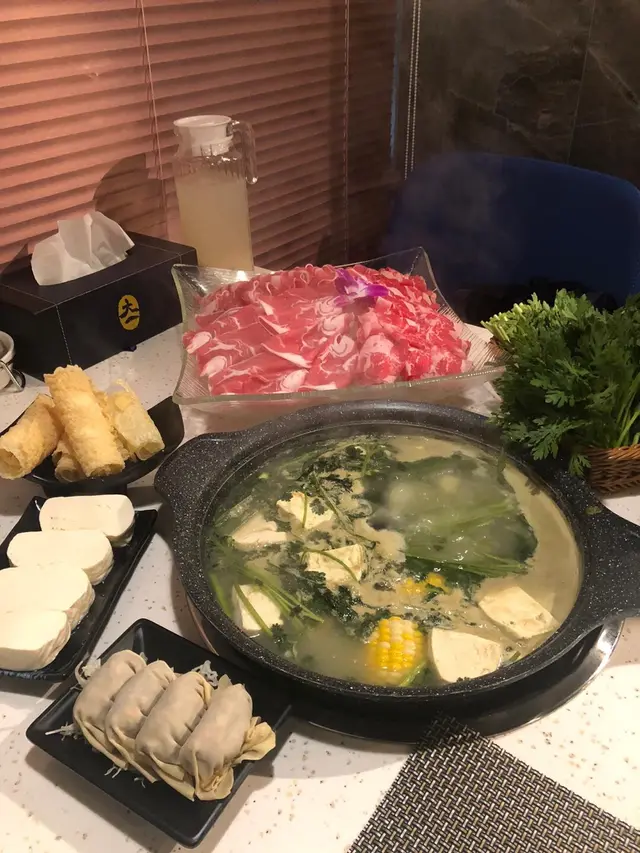 終於到冬天最期待嘅節目👉🏻打邊爐♨️黎左呢間尖沙咀店,鋪都幾大最鍾意佢嘅卡位倚背夠高身,好有私穩度店員會先准備調味架比你混下醬先:)最鍾意沙茶醬,麻醬仲有XO醬我地點左🍲[香茜皮蛋鍋] 用料都幾足有大量莞茜,皮蛋,馬蹄同粟米🌽等等一大煲真係可以當湯飲,飲落幾甜架[爽脆牛胸爽] 🐮朋友大讚牛香味十足我就第一次食,覺得好有咬口爽爽地,幾得意[頂級澳洲黑豚肉]🐷豚肉顏色鮮嫩,薄薄一片但肉味濃食落口感都好滑[鮮蝦雲吞]🦐想講係包左好大隻蝦,皮夠薄[手製韭菜餃]🥟每隻都大大隻我係勁鍾意食韭菜餃嘅人🥬呢隻韭菜味好香濃[手打四寶丸]有鯪魚丸,牛丸,墨魚丸,蝦丸全部手打,好鬼彈牙[新鮮本地鮮黑柏葉]打邊爐必備牛柏葉,好爽口😏呢度食物可以叫全份或半份個人覺得呢個安排幾好如果人數少,可以食多幾款又唔會浪費食物查看更多