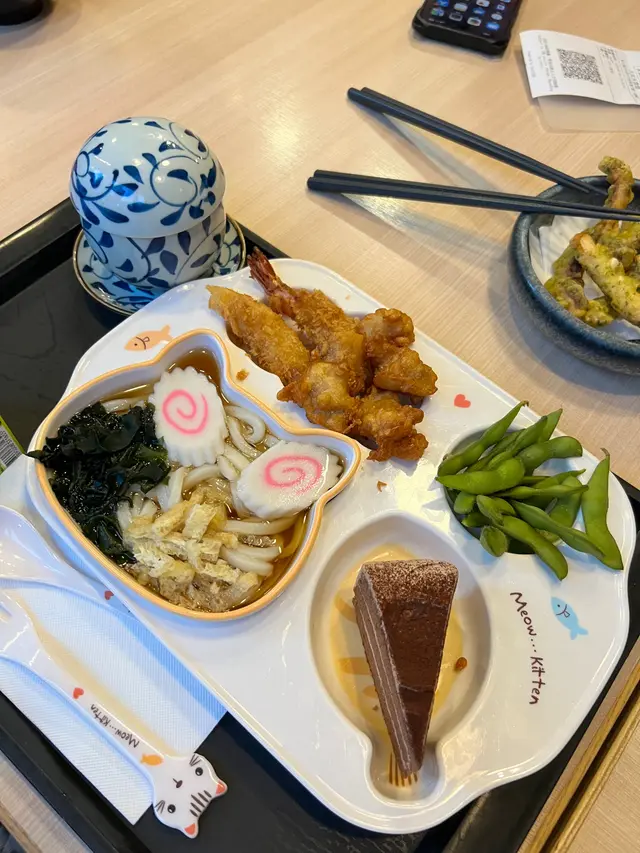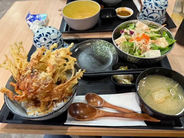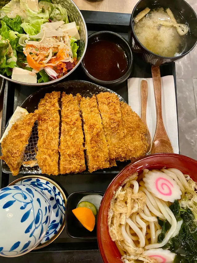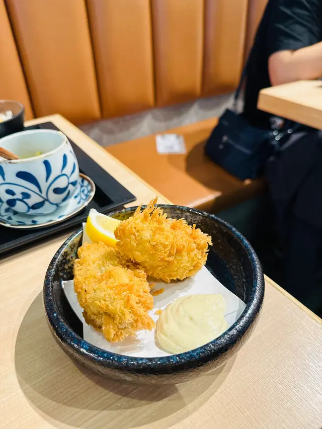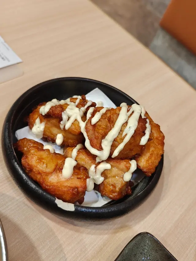 餐牌選擇豐富,拉麵、丼飯、咖喱都有。環境舒服闊落,新樓盤嘅一樓,樓底高好有空間感,枱亦唔係密👍燒鱈魚乾上枱熱辣辣,新鮮焗好脆卜卜,作為前菜一流唐揚炸雞炸雞粉漿超薄,雞肉多汁軟嫩,調味稍清淡,加埋沙律醬超好味