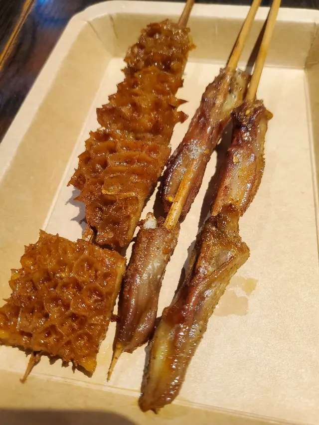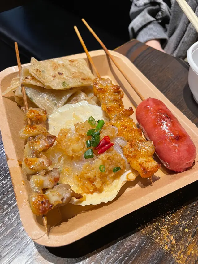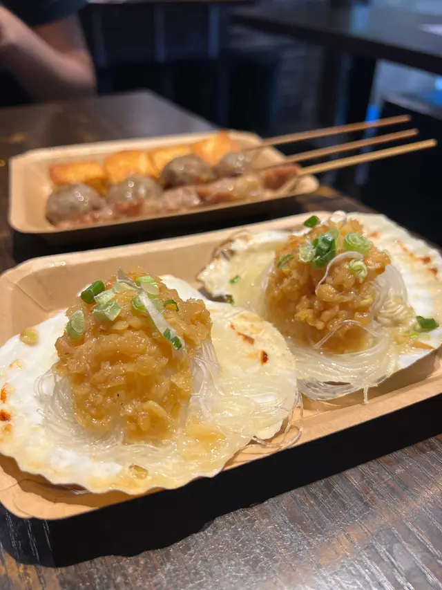 🧔🏻♂️老板態度很好!店面👍幹凈!整潔1️⃣大腸鴨血豆芽粉絲湯好喝!湯頭濃郁,喝了很久還是很燙,適合冬天取暖。大腸處理的很幹凈,肥油留得正合適。豆芽是黃豆芽,略有豆腥味,因人而異喜歡。2️⃣串串好吃!原先以為是烤串,研究了很久發現是煎加烤的(也可能猜錯了)。這次只點了一部分,其中➡️強烈推薦:烤五花腩肉,燒濃芝豆腐,厚燒切熟牛舌,蒜烤生蠔,燒大雞翼無功無過: 燒牛胸油(有一股過於強烈的油炸味,這玩意兒果然還是適合湯火鍋涮)3️⃣錫紙金針菇:味道很足,是我喜歡的配料簡單。像面一樣吸溜吸溜就好。4️⃣燒秋葵:一小盤,份量在香港算挺足的了5️⃣燒多春魚:標準水平…查看更多
