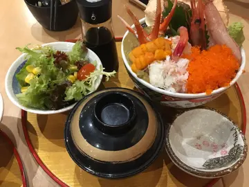 约了朋友在附近戏院睇戏,找到这间吃丼的餐厅。由于我们在颇早的时候来到,店内只有少量食客,因此我们可立即入座,店内环境宽敞。我们三个人,每人点了一个套餐,每个套餐都有沙律和汤。鱼生饭的鱼生新鲜;牛肉饭的牛肉嫩滑。…查看更多