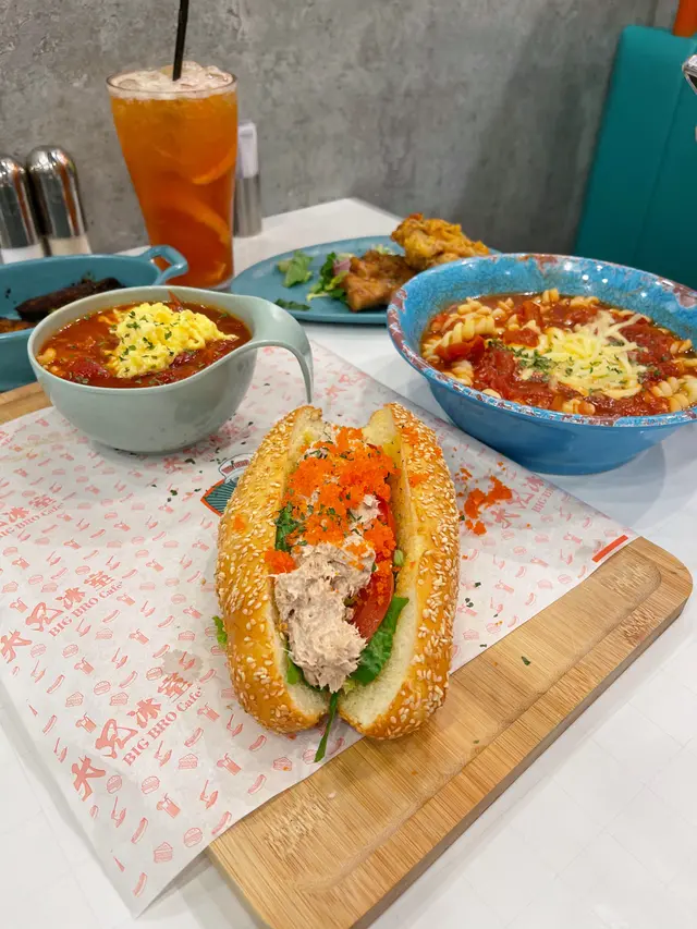 蕃茄湯底做得不錯 tasteology.hk等级42021-03-23104 浏览 关注 大兄冰室Big Bro Café呢間冰室主打蕃茄湯 漢堡包潛艇堡蕃茄濃湯用左意大利長茄 車厘茄 大紅茄熬製8個鐘天成飲品選擇好多 有齊港式台式 日式芥末蟹籽吞拿魚蒜香芝麻包($45)配迷你蕃茄蛋濃湯粉+飲品食物用木板上放得幾精緻芝麻包大大個 烘過鬆軟 吞拿魚蟹籽份量都幾多配埋迷你蕃茄蛋濃湯粉係幾飽肚幾抵食1次過試到兩個招牌鴛鴦雞扒螺絲粉雙重芝士蕃茄濃湯($76跟自選小食)蕃茄得揀配芝士定蛋&辣度蕃茄味幾濃稠 仲食到唔少蕃茄蓉 湯底是做得不錯 配螺絲粉最岩雙重芝士份量多到做到拉絲 鴛鴦雞扒同瑞士雞翼就不過不失飲品方面特飲有半價平干地飲到台式茶飲西柚烏龍做得幾好 清新解渴的唔會過甜仲飲到西柚+茶味唔會只飲到西柚味而飲唔到茶味…查看更多+ 2以上食记乃用户个人意见 , 并不代表OpenRice之观点。赞好分享蕃茄湯底做得不錯 大兄冰室 https://s.openrice.com/QrLT0JO4y00检举 张贴 评分4味道4环境4服务4卫生4抵食推介美食日式芥末蟹籽吞拿魚蒜香芝麻包$45鴛鴦雞扒螺絲粉雙重芝士蕃茄濃湯$76鴛鴦雞扒螺絲粉雙重芝士蕃茄濃湯$76鴛鴦雞扒螺絲粉雙重芝士蕃茄濃湯$76西柚烏龍用餐日期2021-03-15用餐途径堂食