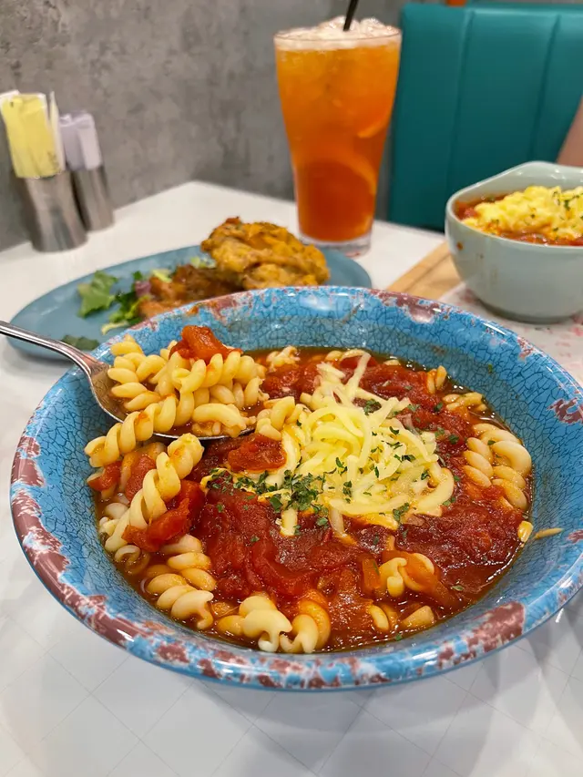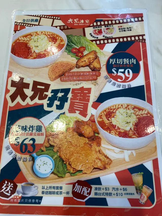 Siの小分享 ~ 幾有特色的冰室 si分享開心事等级42021-10-05251 浏览 关注 又去呢個商場搵食知道呢度有間特色d既冰室,今次終於有機會試下,午市時間要排隊等位,等左10幾分鐘就有位啦餐廳都唔算太大間,有卡位同窗邊位,可以一邊食野一邊望下街景見上網好多人讚佢既蕃茄湯底,好似幾吸引午市仲有其他套餐,款款都圖文並茂,望落去都幾吸引飲品揀左個熱咖啡,幾香唔錯另一個加左$8揀左珍珠奶茶,都幾似平時飲既台式奶茶,珍珠幾煙韌,唔錯跟餐揀左個田園沙律,呢個係用芝麻醬,不過無乜驚喜蟹籽野菌甜椒絲海蝦忌廉意大利粉,仲配左塊蒜蓉包,塊包好香蒜蓉牛油味好脆個意粉唔算太淋,雖然係忌廉但又唔會太膩,蝦就比較細隻不過都有4、5隻,味道ok另一個揀左芝味炸雞拼蒜蓉汁法蘭克福腸,芝士醬個味唔算太濃,炸雞都香脆既;蒜蓉汁係平時食鐵板果種蒜蓉汁,味道比較濃蕃茄濃湯螺絲粉,呢個蕃茄湯真係唔錯喎,蕃茄味夠濃,中間仲有d蕃茄肉,螺絲粉又唔會太淋,唔錯!整體感覺唔錯,食到d唔係平時茶餐廳食既野…查看更多+ 6以上食记乃用户个人意见 , 并不代表OpenRice之观点。1分享Siの小分享 ~ 幾有特色的冰室 大兄冰室 https://s.openrice.com/QrLT0uycVW0检举 张贴 评分3味道3环境3服务3卫生3抵食用餐日期2021-09-26等候时间15 分钟 (堂食)人均消费$68 (午餐)