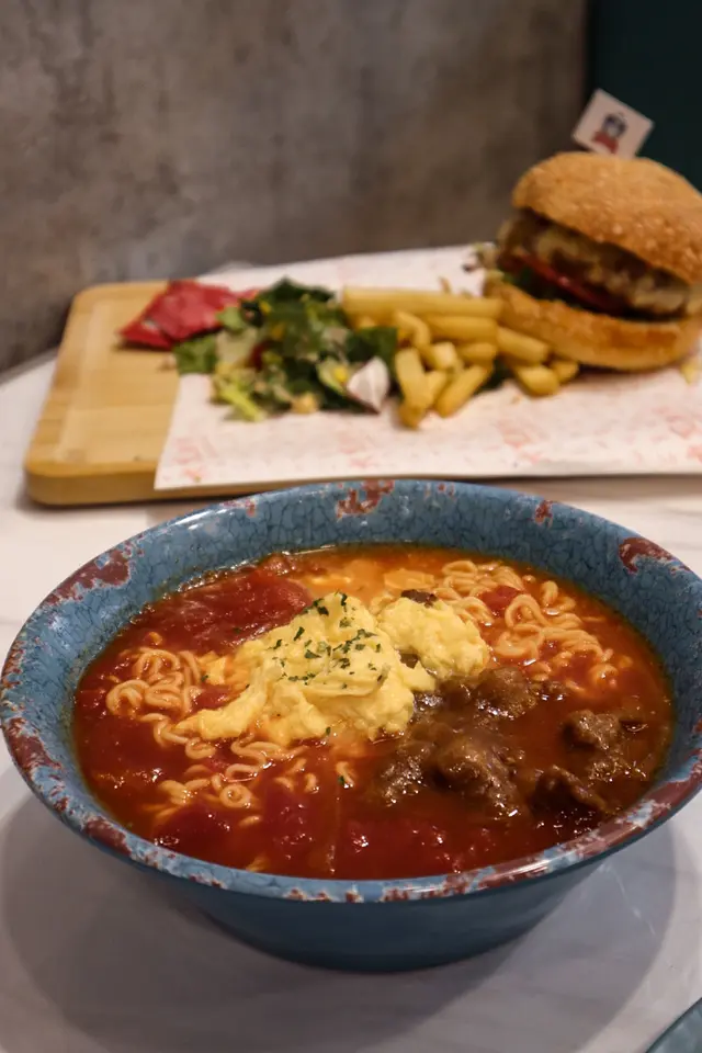 主打番茄湯✨✨🍅 xmelissalamx等级42021-04-181K 浏览 关注 /大兄冰室🇭🇰/#sa荃灣篇 ➖➖➖最近愛上茶記 會揾唔同好食嘅番茄湯同沙嗲牛西式嘅話都會想食burger 滿足下~呢間冰室同時滿足到我幾樣願望❣️佢近荃灣嗰啲住宅商場 但有啲隱蔽 店舖主打番茄湯底 大部分粉麵都係配番茄濃湯除咗粉麵都有西式嘅burger 、潛艇堡連台式飲品都有!番茄湯的確幾出色 係荃灣又多間可以食🤤➖➖➖1️⃣港式沙嗲牛公仔麵 $33 (𝟟.𝟠/𝟙𝟘) 🌟本身以為係沙嗲牛😝但原來都係配番茄湯底覺得配螺絲粉會更夾~湯底都可以揀辣度 中辣已經夠惹味會越食越辣😆 番茄味都夠濃稠 雖然公仔麵唔算好有咬口 較腍 但都幾掛湯入味沙嗲牛嘅味道都幾濃 牛肉都帶嚼勁 不過加左番茄湯就變咗唔係主角🤣配埋炒蛋都幾滑 亦可以+$8 配炒蛋蒜蓉多士+ 多一份滑蛋牛油香幾重🤤 如果再烘脆啲就更好➖➖➖2️⃣經典日本牛肉流心五重芝士漢堡包 $58 (𝟟.𝟜𝟝/𝟙𝟘) 漢堡包就好似平日茶記咁~不過烘得幾香脆 有好多芝麻粒✨中間塊漢堡扒幾厚身 肉質幾軟腍 亦有幾多流心芝士同芝士醬~凍左會比較乾硬 但食完唔會好膩!另外亦會配埋薯條同沙律呢👻➖➖➖3️⃣奶蓋四季春 ~$17 (𝟟.𝟛/𝟙𝟘) 跟餐半價 雖然無得無糖 甜度都唔會好高初頭飲都覺得茶底幾濃 後來混埋奶味較重😛奶蓋都幾厚稠 充滿咸香 覺得茶記嘅話質素算不錯👌🏻➖➖➖4️⃣鮮橙四季春 ~$17 入面有新鮮橙😝 都算幾清新嘅如果茶底再濃啲就更好🌟➖➖➖📍大兄冰室…查看更多+ 3以上食记乃用户个人意见 , 并不代表OpenRice之观点。赞好分享主打番茄湯✨✨🍅 大兄冰室 https://s.openrice.com/QrLT0cEWy00检举 张贴 评分4味道4环境4服务4卫生5抵食推介美食經典日本牛肉流心五重芝士漢堡用餐日期2021-03-20等候时间10 分钟 (堂食)用餐时段下午茶