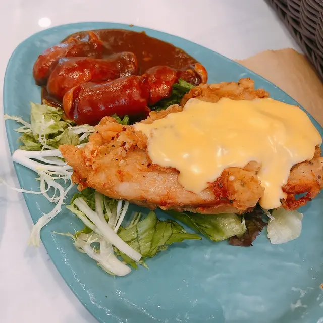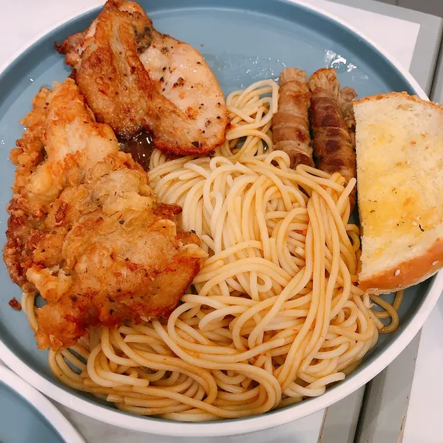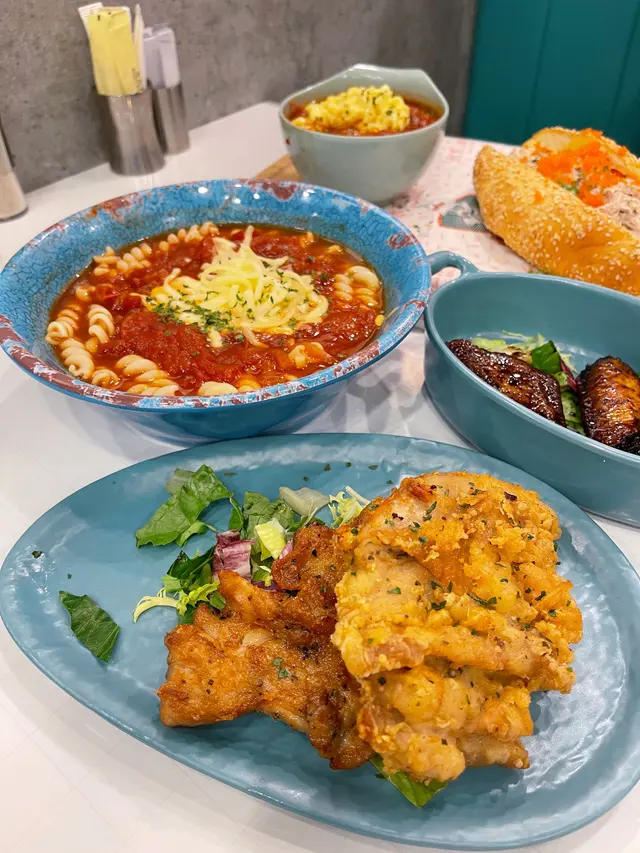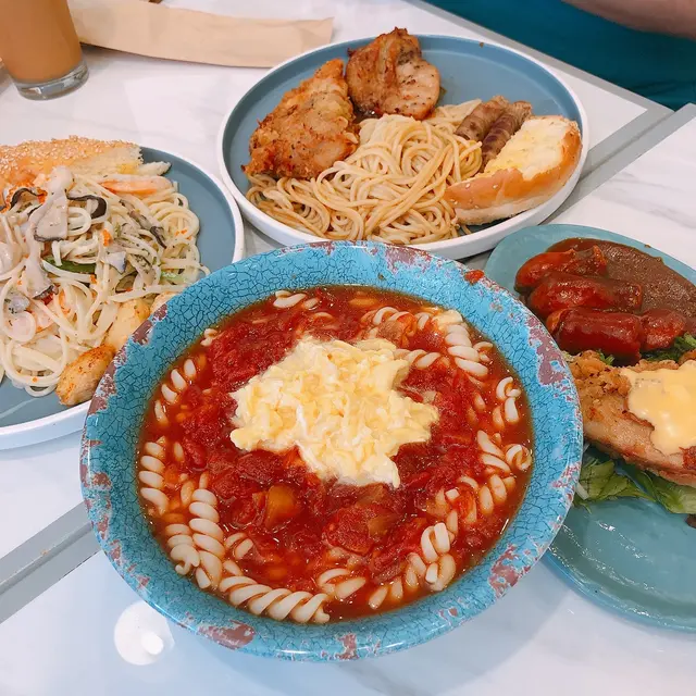 蕃茄濃湯螺絲粉 hk.eateateat等级42021-09-17218 浏览 关注 次次經過荃豐都一定會見到大兄冰室出面大大個logo,今次就去食翻個快飯。本身諗住冰室賣既野食都係港式野,點知佢賣既野食又偏西式wor😯餐牌見到啲意粉、漢堡、熱狗,當然都有啲港式啲既野食好似公司三文治果類。另外最吸引我既就係佢既蕃茄螺絲粉!一見到諗都冇諗就揀左佢。 1⃣️芝味炸雞拼蒜茸汁法蘭克福腸 跟蕃茄濃湯粉($63)炸雞都幾大舊,炸得幾香肉又厚,但係炸皮有啲濕左淋左,面頭有一大片溶左既芝士🧀腸仔配上極多蒜茸汁😂正~另外蕃茄濃湯真係好濃,入面有好多煮到淋曬既蕃茄蓉🤤滑蛋都好多。另外螺絲粉份量爆多,本身我都自認大食架la,但係呢碗螺絲粉我真係食到差啲食唔曬🙈 2⃣️蟹子野菌甜椒絲海蝦忌廉義大利粉(配花枝丸)($58) 蟹子比得多幾多,意粉係偏港式風味,忌廉汁偏稀身,不過配料比得好足。蝦、蟹子、菇所有野都幾多。另外仲有跟蒜蓉包,同平時食西餐果啲脆脆既蒜蓉包好唔同,呢個蒜蓉包係軟熟既包,唔係好似有烘過,面頭搽左啲蒜蓉醬。午餐有得揀根花枝丸或者沙律🥗揀左花枝丸,唔算彈牙,可以當過下口癮咁。 3⃣️鴛鴦雞扒拼金菇牛肉卷(配花枝丸)($65)鴛鴦雞扒係有煎雞扒同炸雞扒各一件。煎雞扒又算幾嫩滑wor,快餐質素黎講算平均以上,炸雞扒雖然有啲甩皮甩骨咁,但係調味係唔錯既👍另外仲有金菇牛肉卷,牛肉好乾身,而且冇汁冇調過味咁,呢個麻麻地。意粉係偏向港式炒意粉咁,份量又係極多。 …查看更多以上食记乃用户个人意见 , 并不代表OpenRice之观点。赞好分享蕃茄濃湯螺絲粉 大兄冰室 https://s.openrice.com/QrLT0M8ezW0检举 张贴 评分3味道3环境3服务3卫生5抵食推介美食芝味炸雞拼蒜茸汁法蘭克福腸 跟蕃茄濃湯粉芝味炸雞拼蒜茸汁法蘭克福腸 跟蕃茄濃湯粉用餐途径堂食