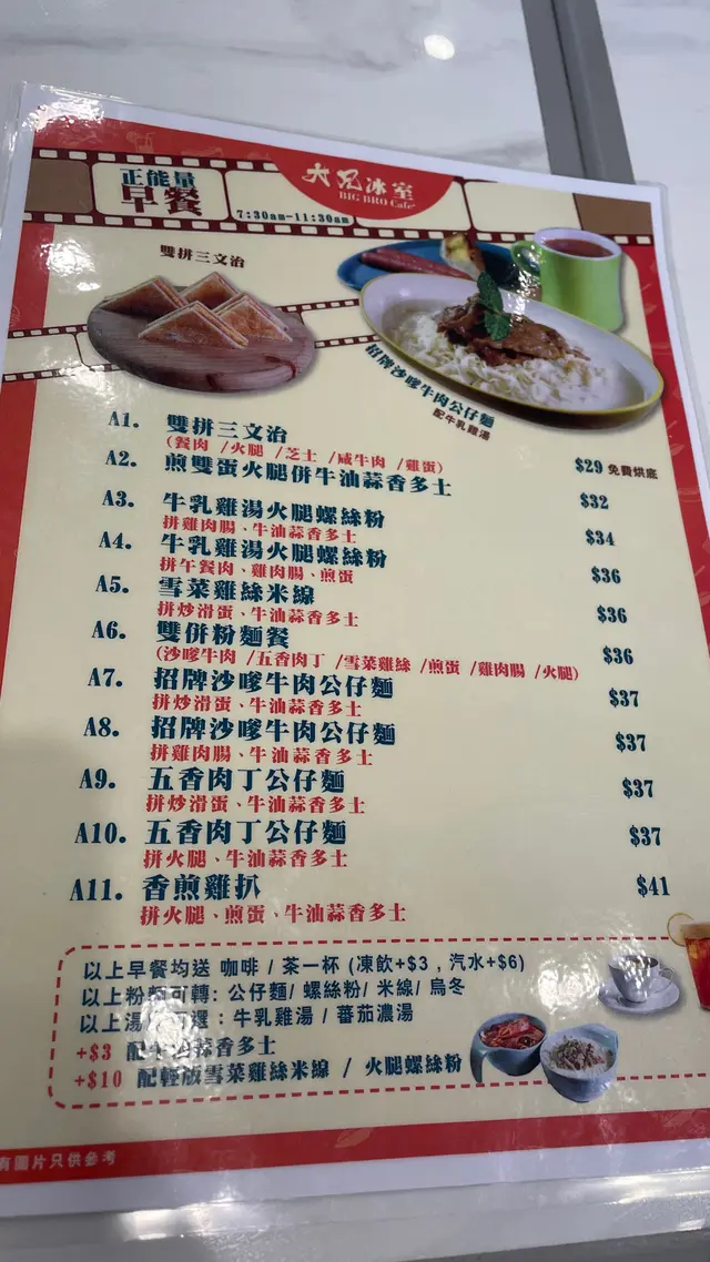 早餐有待改進 yanwai等级12021-05-15179 浏览 关注 今朝要去荃灣做嘢,食早餐,第一次試呢間,未坐落見隔離連鎖店七八成枱有客但呢間就得一兩枱客,都有啲猶疑,但想幫襯多啲非連鎖店,都姑且一試,食完覺得大有改善空間。沙爹牛五香肉丁麵,奶茶,要$40,已經覺得貴,唔緊要,都試下。結果牛肉同肉丁都超少,麵太硬,奶茶太重茶味無奶味。或者早餐唔係佢主打啦。…查看更多以上食记乃用户个人意见 , 并不代表OpenRice之观点。赞好分享早餐有待改進 大兄冰室 https://s.openrice.com/QrLT0ELuyW0检举 张贴 评分--味道4环境2服务3卫生--抵食用餐日期2021-05-15等候时间5 分钟 (堂食)用餐时段早餐