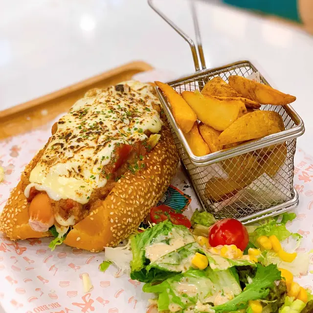 大兄冰室 nice.foodie等级42021-12-27279 浏览 关注 大兄冰室地址: 荃灣西樓角路136-168號荃豐中心地下A1號舖雙重芝士蕃茄濃湯 🍅 $56有好濃郁嘅蕃茄味,唔知以為飲緊蕃茄湯,有多種蕃茄,蕃茄蓉熬製而成,而且啲雙重芝士都不少,不錯。但啲配菜就唔係好掂,口感較為硬,乾身,失望咗少少。火焰芝士肉醬熱狗套餐 🌭$65軟綿綿嘅麵包,裡面包住多到滿瀉嘅秘製肉醬和用咗火槍燒溶咗嘅芝士,再配上脆皮法蘭克福腸,味道食落香口不錯。…查看更多以上食记乃用户个人意见 , 并不代表OpenRice之观点。赞好分享大兄冰室 大兄冰室 https://s.openrice.com/QrLT0x6L100检举 张贴 评分3味道3环境3服务3卫生3抵食用餐途径堂食
