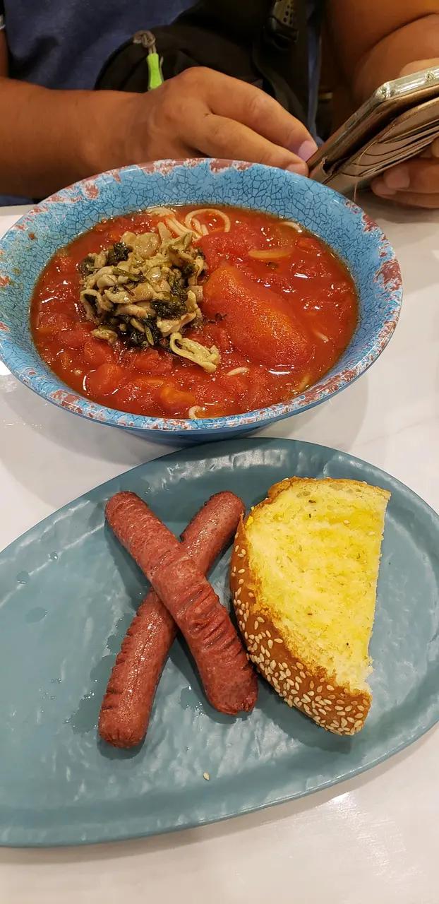 好惹味既招牌蕃茄濃湯螺絲粉😋 helen224等级42021-03-26111 浏览 关注 係千色店買完野,過咗對面大兄冰室食個晚餐先返屋企。🔸香煎雞扒拼蕃茄濃湯螺絲粉🍅揀呢到就係因為想食蕃茄湯底既野😍除左螺絲粉仲可以揀其他例如米線、烏冬。蕃茄湯底好濃郁,唔會好酸,有少少茄肉而且湯底都幾傑身,唔會水汪汪咁。我要左微辣,食落好惹味,好開胃😋仲有配滑蛋又係一流🍳不過如果滑蛋再多啲就更好😍有兩塊雞扒,雞皮煎得好脆,雞肉都算嫩,唔會乾爭爭。螺絲粉份量好多,男人食應該都夠晒飽。要左套餐,可以揀小食同有杯飲品。小食揀左瑞士雞翼(2隻),瑞士汁都幾入味,甜甜地好食!我要左凍檸茶,同平時茶餐廳既凍檸茶唔同,覺得多左青檸味,有少少似台式飲品咁,都唔錯👍🏻🔸香蒜西冷牛扒配意粉、蒜蓉包🐮🍝西冷牛扒好大塊,肉質好軟淋無筋,冰室質素來講算唔錯。意粉有忌廉汁,蒜蓉包都香脆。晚餐仲有蕃茄湯或者沙律揀,已經揀咗蕃茄螺絲粉,所以揀咗沙律,成個餐份量都好多!加$10轉特飲😎朱古力脆脆🍫呢杯十分推薦!朱古力味好濃郁,上面有啲cream,飲落仲有粒粒朱古力碎,有雙重朱古力嘅感覺,正😋今晚食咗兩個餐,整體都唔錯,餐廳都乾淨企理。見到仲有漢堡包同潛艇系列🌭🍔款式好多,都好吸引,下次可以再嚟試吓!…查看更多+ 8以上食记乃用户个人意见 , 并不代表OpenRice之观点。赞好分享好惹味既招牌蕃茄濃湯螺絲粉😋 大兄冰室 https://s.openrice.com/QrLT0G8uy00检举 张贴 评分5味道5环境5服务5卫生5抵食用餐途径堂食