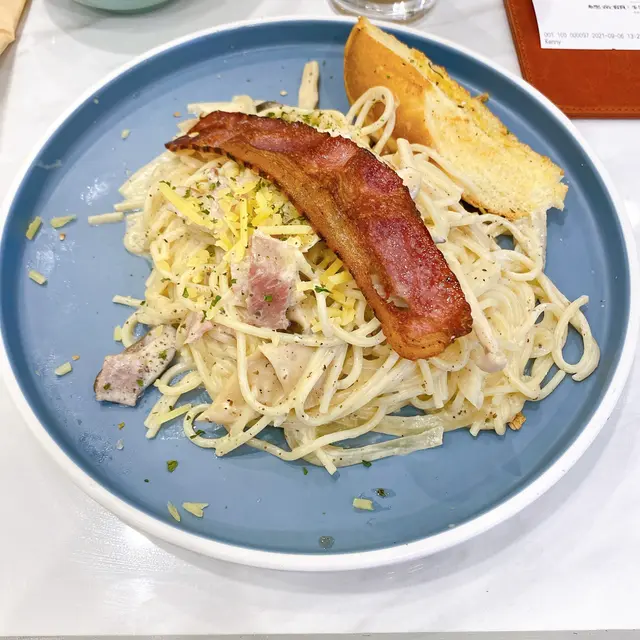唔錯唔錯 mh_xmh等级42021-09-14208 浏览 关注 荃灣其實真係一個幾好嘅地方,交通方便又多美食。今日係荃灣做完公事決左食埋個午餐先返屋企。係巴士站附近見到呢間大兄冰室。望過menu好似都幾吸引。午餐仲有沙律送添。黑松露卡邦尼野菌脆煙肉忌廉意粉:雖然我完全食唔到有黑松露嘅味道,但個意粉嘅味道都唔錯。最搞笑嘅係意粉上面有個蒜蓉包。沙律就正正常常。無咩特別。炭燒咖啡:呢杯咖啡不得不讚。除左香濃嘅咖啡味道之外。奶味勁濃郁。好啱我口味。最後要提一提嘅係餐廳衛生唔錯。餐具亦都係一份份包好。係而家呢個時勢之下對食客都係一份保障。…查看更多+ 2以上食记乃用户个人意见 , 并不代表OpenRice之观点。赞好分享唔錯唔錯 大兄冰室 https://s.openrice.com/QrLT0KdmzW0检举 张贴 评分5味道5环境5服务5卫生4抵食用餐途径堂食