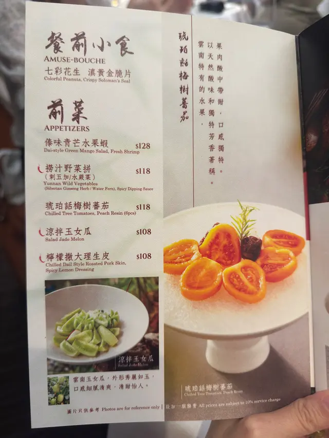 -大公馆 🥢最近位于荔枝角既大公馆联同云南昆明著名帕普曼酒店集团旗下食府「山海壹号」餐饮总监推出全新菜单 — 呈献传统滇菜文化 带黎经典传统同创新融合既滇菜佳肴 即系云南菜— 以民族融合饮食特色和多样性食材而闻名由鲜嫩清香既野生菌类 到酸辣适中既特色小吃 都展现出云南独有地域风情同民族文化既风味《食,山海为一,味自天成。》系「山海壹号」品牌理念今次既菜式中亦都感受到主厨对滇菜既深刻诠释坚持选用云南原生态既山海珍馐 食到食材既本味同层层递进既细腻风味🥬捞汁野菜拼 — 刺五加/水蕨菜 ($118)严选云南野菜 — 刺五加带草本香气;水蕨菜爽脆清新配上微辣酸香的蘸汁 提升野菜自然鲜味 清爽开胃🍅琥珀话梅树蕃茄 ($118)用上云南特有水果 — 金黄色树蕃茄 果肉饱满厚实用话梅汁浸过 天然果香突出 酸味清新不涩 配上桃胶 口感滑润 整体感觉清爽又消暑🍄菌香雁唇($138)鹅唇薄切片以鲜香菇油包裹 嫩滑弹牙 辣椒油香气浓郁带出本身的鲜味与甘香 余韵有微微麻感微辣 唇齿留香🧉水性杨花炖葫芦($148/pp)鸡皮包裹嫩滑鸭蓉 汤底细致清澈 带有水性杨花独特幽香汤头鲜美甘甜 鸭肉细腻 鸡皮软滑 淡雅花香融入汤中添加一抹山间野趣 好饮呢🌟🌟🌟🌟🦆香茅脆皮小麻鸭($298)属于云南省经典既汉族传统名肴之一 — 烤鸭经多重工序炮制 外皮炸至极致酥脆 咬落去鸭皮油脂四溢 肉质紧实不失嫩滑 香茅清香渗入肉中 每啖都油香扑鼻🍖留兰香薄荷炸排骨($168)排骨外层炸得薄脆 内里猪肉鲜嫩多汁薄荷同留兰香既清新草本香气 为炸物减腻提鲜每啖都有香脆同清香 余韵带微微甜意 唔怕好油腻🍝经典过桥米线($538/4pp)第一次食到高阶版既云南过桥米线 — 严选六款鲜美肉类同六款优质蔬菜 包括鲍鱼、宣威火腿、花胶、酥炸肉、土鸡、鲜虾、黑毛猪豚肉等等 搭配汤底同弹牙米线 食落香气浓郁 鲜味满满 忍唔住食左4碗🌟🌟🌟🌟🍖宣威火腿馅饼($48)听讲系云南历史悠久且独具特色的滇式糕饼之一选用云南特有既宣威火腿融合蜂蜜制作出而成既糕点几中意用呢款咸香微甜既糕点作结束🌟🌟🌟🌟🌟…查看更多