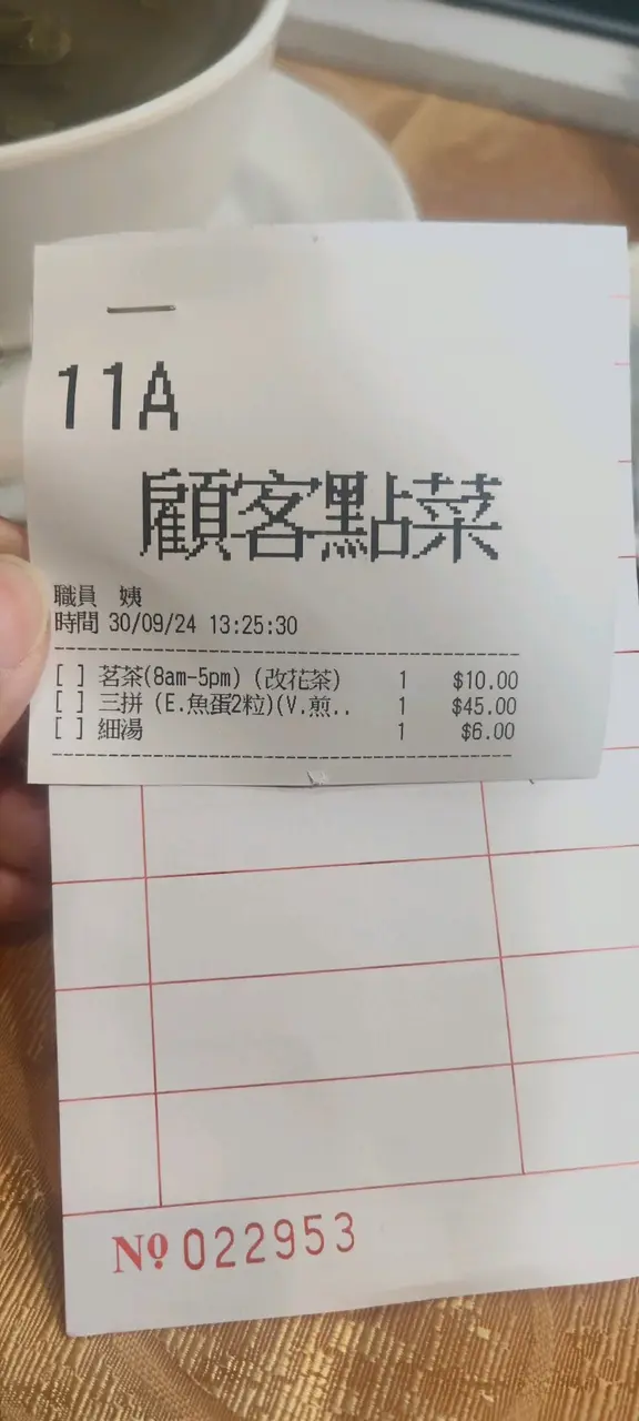 今日又過來幫襯, 今日唔要菊花茶, 叫人冲左壺玫瑰花茶🌹, 琴日見人食椰汁紅豆🫘糕, 今日叫一件試下, 今日例湯係冬瓜祛濕湯, 亦叫番蔬菜湯三餸麵, 玫瑰花🌹唔係太濃, 少少清香, 等左一陣送來椰汁紅🫘豆糕, 好香椰汁味好多紅豆, 不過糕實淨左少少😆但勝在唔係好甜😋👍轉頭送上冬瓜祛濕湯, 入面有粟米🌽紅🥕蘿蔔, 亦有雪耳和豆, 煲得好香好濃👍👍, 飲落清甜舒服, 今日也是叫上海麵同煎蛋🍳加菜🥬, 不過今次試下魚片, 入面加左粟米🌽食落少少甜幾得意😘, 今日係紅日所以無敢多人, 但大家留意紅日公眾假期星期六日要另外加一服務費😅查看更多