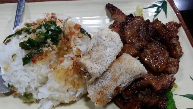 此店十二時至一時許其門如市,今日有幸而至插針得座,起初想點生牛肉河,但見別人大大份的客飯也只五十多元,尚且一試炭燒豬頸肉飯。來的時候肉微暖,伴醒胃魚露醋,惹味之餘有炭香,天作之合的味道加上爽滑的肉片份量頗多,實在令人大快朵頤,而且配菜毫不馬虎漂亮清新,是一頓均衡的餐膳,白飯大細剛好不多不少且有米香,各食材都令人没齒難忘。最後的熱奶茶為飯滯的感覺打上醒神針,整頓飯$52在灣仔屬中等價但勝在質高,怪不得顧客及外賣都駱驛不絕。…查看更多