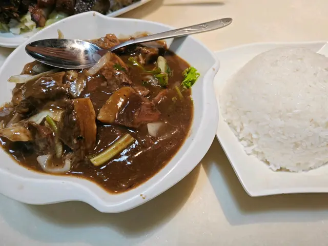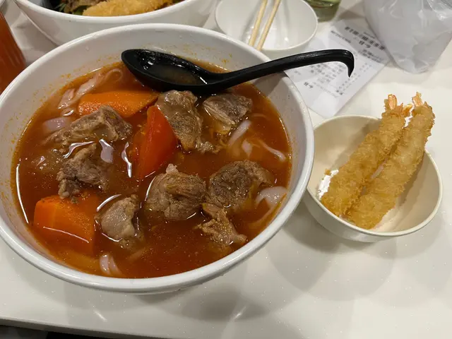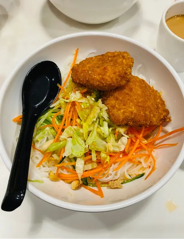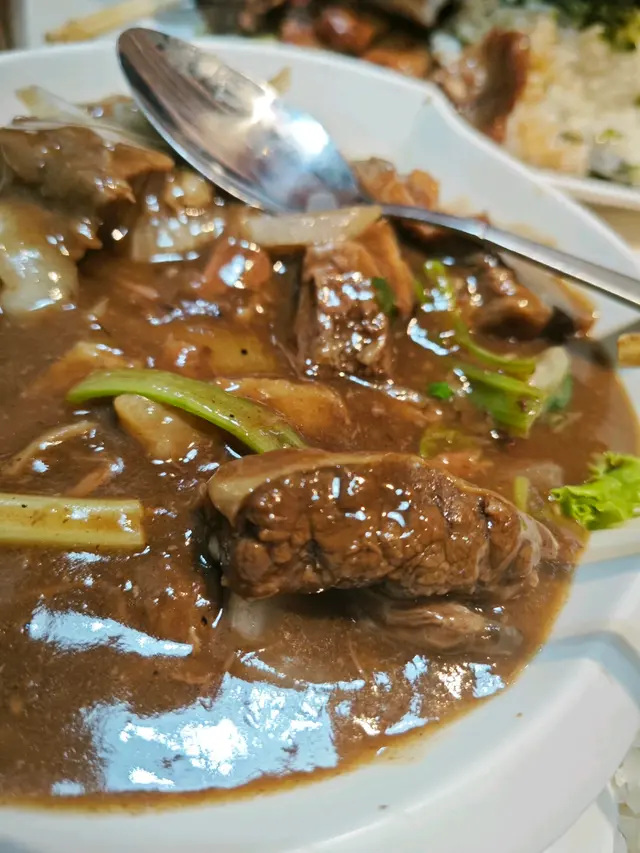 今天來灣仔工作,中午去到附近的越南餐廳吃飯。本來是想要點pho的,但是怕下午很快會餓,所以我點了飯,越式牛坑腩飯。味道有點像港式的牛腩煲,但是帶一點點酸味的,可能是東南亞風味吧?感覺不全是牛坑腩,可能只是放了一兩塊,其他都是普通牛腩,下面墊底的有一半都是生菜和洋葱,肉量不多。吃到一半的時候會感覺有點咸。