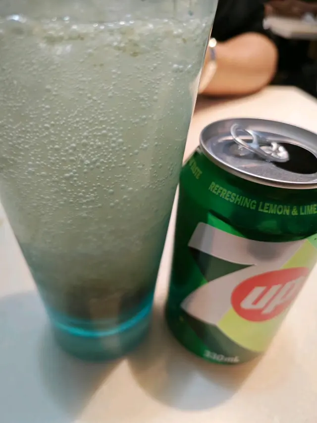 而飲料方面,我選了咸檸七。反而這杯飲料用的咸檸還算是不錯的。都是已經提前捣爛的,直接加七喜就能喝。