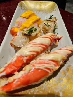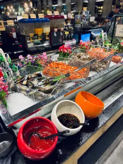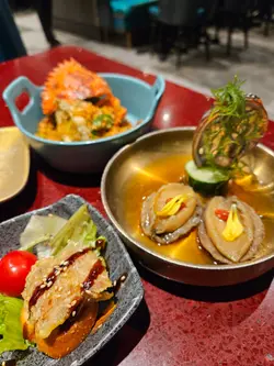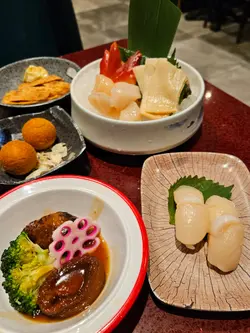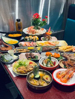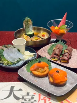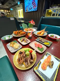 大喜屋是吸引的放題餐廳,除了惹味的自助小食,豐富的刺身,湊合多款火炙壽司及手卷,也可品嚐共40多款的一品料理、串燒、揚物及甜品等,2小時的放題,親民扺食,令人食指大動。刺身※北海道帶子/極尚大赤蝦/三文魚/甜蝦/蜜柑鯛 蜜柑鯛細膩口感,鮮甜而清爽,三文魚油脂豐富,口感滑順。大赤蝦肉質緊實,鮮香味濃。壽司及火炙壽司※三文魚腩/ 牛油果醬吞拿魚/ 黑松露油金魚腩/ 北海道帶子壽司※醬燒帝皇蟹棒/鹽燒三文魚腩/ 醬油漬左口魚邊/芝士醬燒大蝦/牛油蒜香帆立貝蟹棒外焦內嫩,啖啖濃郁的醬香,滋味可口。三文魚腩炙燒後,肉質油潤,散發魚鮨香氣。芝士醬燒大蝦彈牙,半溶芝士香氣四溢。蒜香帆立貝的蒜香濃郁,增添帆立貝風味。創作壽司料理※鵝肝芝士鰻魚卷/ 黑松露蟹肉軟殼蟹卷/ 香芒龍蝦沙律吉列蝦卷軟滑的鵝肝,加上肥美鰻魚,豐富鮮香。香脆吉列蝦,碰上芒果的甜香,清新爽口。特色刺身料理※花雕醉鮑魚/ 藍莓醬蘋果鵝肝/ 煙三文龍蝦沙律多士及海膽拖羅蓉蟹籽杯鮑魚香滑,鮮味中沁出花雕酒香,鮮味四溢。香脆多士,配上清新的龍蝦沙律,清爽開胃。串燒及燒物※鹽燒牛舌/雞軟骨串/燒溫室菠蘿※香草燒羊鞍/ 極品金枕頭榴蓮燒/ 比目魚西京燒及蒲燒鰻魚比目魚粉嫰滑溜,配上西京燒法,充滿和風特式。鰻魚甘甜,口感滑嫩綿密。榴蓮的濃郁甜味,在燒烤後更加誘人。香甜多汁的菠蘿,清新味蕾。一品料理※厚切鵝肝多士/ 炸乳鴿/ 黑椒蜜汁一口牛※川味燒鮮蠔/ 金湯燴花膠/ 避風塘炒蟹/ 油鹽焗大頭蝦※雪花牛肉鍋/ 鮑魚皇帝蟹皇粥/ 牛油煮大蜆及花菇紅燒鮑魚鵝肝金黃香脆,內裡綿密,咬下去滿滿油香,十分滋味。燒蠔柔軟,加上蒜蓉辣椒提鮮,鮮香微辣肉汁,胃口大開! 燴花膠黏糯,骨膠原美味又滋補。新鮮的鹽焗大頭蝦,肉質爽彈,可品嚐濃稠蝦膏。雪花牛肉鍋湯底香甜,牛肉軟腍,溫暖可口。紅燒鮑魚是入必點,鮑魚圓厚紮實,掛滿糖心鮑汁,味道細膩鮮香。甜品※海燕窩椰汁燉木瓜木瓜果肉香甜,燉至軟綿,加上香甜的椰汁,海燕窩滑不溜口,甜度天然柔和,養顏窩心。自助甜品區提供多種甜品,如抹茶、紅豆、草莓、芒果等,滿足不同愛好,包括傳統和菓子、草莓大福、焦糖布甸、馬卡龍等,讓甜品胃大滿足。…查看更多