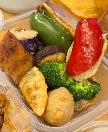 大围小食是大围火车站对面一间屹立多年的老字号小食店,堪称街坊的集体回忆,港式小食扫街热点🤭。餐厅位置极其便利,步出地铁站数步便到,店面虽小,但每次去都人头涌涌,店员热情高效,所以每次去都唔需要等太耐。每次嚟都忍唔住会嗌咗劲多嘢食😆😆串烧就系其中一款必点次选,即叫即烧,所以离远已经闻到串烧嘅香气❤️小妹推荐必点之选有司华力肠、猪颈肉、鸡髀肉和 牛丸。司华力肠烤得外皮微脆,内里多汁,咬下时带有浓郁的香料风味,炭火香气扑鼻。猪颈肉油脂分布均匀,烧烤后肉质弹牙,鸡肉串烧嫩滑多汁,火候恰到好处,表面略带焦香。牛丸则结实有嚼劲,肉香浓郁,一串4粒分享最佳🤭🍲碗仔翅承载了浓厚的港式怀旧情怀。碗仔翅用料充足,有冬菇和木耳的香气,配以少量肉丝和粉丝,口感层次丰富。羹质浓稠却不黏腻,入口顺滑,调味适中,带有微微胡椒香,加埋红醋一齐食味道更佳👍🏻👍🏻🍢鱼肉烧卖+陈皮鱼蛋配自家制辣酱是另一款招牌必食经典街头小食。金龙烧卖外皮烟韧,内馅啖啖鱼肉带有轻微咬口;陈皮鱼蛋够弹牙而带点陈皮微微嘅甘香,。搭配店家自制的辣酱,香辣中带点微甜,完美提升了烧卖鱼蛋的风味,令人一口接一口。辣酱的浓郁香气尤为出众,但对不嗜辣的食客来说,建议要求少辣以免抢味。狗仔粉则是简单却充满港式风味的选择。银针粉筋道有嚼劲,汤底清甜,加入肉碎、冬菇丝和葱花,增添了丰富的口感层次。‼️重点辣菜脯的点缀为汤底带来一丝爽辣,虽然辣到颇高,但却令人回味无穷。煎酿三宝款式多样,每次嚟都会嗌一大盒,有齐茄子、青椒和豆腐等,鱼肉馅料厚实弹牙,炸得外脆内软。茄子吸满酱汁,入口多汁;青椒保留爽脆口感;豆腐则滑嫩可口,搭配甜辣酱更是惹味。…查看更多