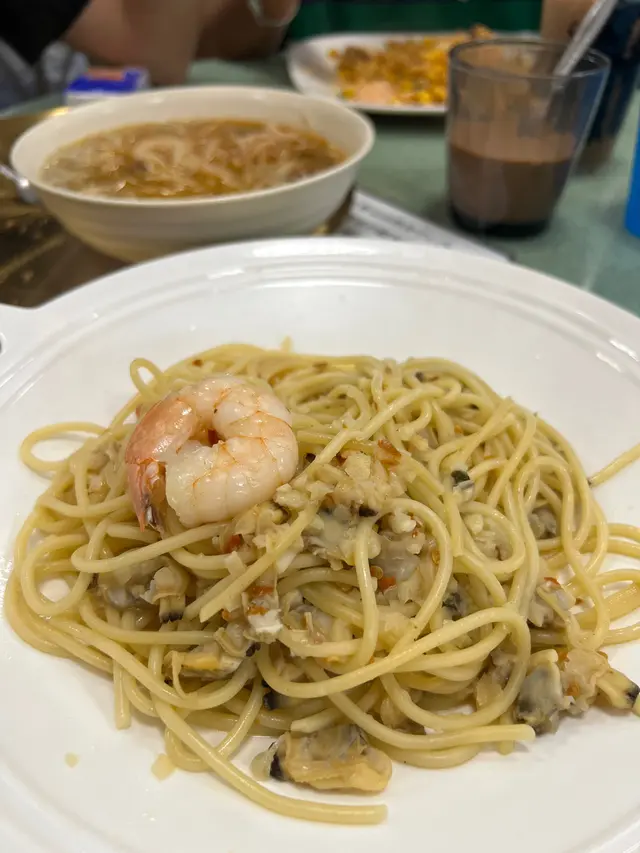同啲鄰居出嚟買海鮮,預備夜晚食飯。平時自己出嚟嘅話就多數食呢間㗎下午茶,諗住介紹俾啲鄰居試吓。點知個沙嗲牛肉唔夠味同埋個脆豬唔夠脆,亦都亦都比較少醬。同埋個松露蛋冇乜蛋味。另外個鄰居朋友點咗五香肉丁炒飯,飯底尚算乾身,但係就唔係好入味。諗住今日中午出到嚟就試吓佢啲午餐,咁就嗌咗個蒜香蜆肉意粉炒蝦球,蝦球就真係冇醃過,但係啲蒜蓉同埋辣椒配埋啲蜆肉真係好出色啲意粉硬到適中又咬口,跟住啲鄰居事緣我嗰個意粉之後即刻呆咗。仲笑我伏在佢地,不過個意粉真心得,如果個蝦球可以能下就更加出色。今次個食物評分係俾個意粉,因為鄰居嗰啲成都係試左d。…查看更多