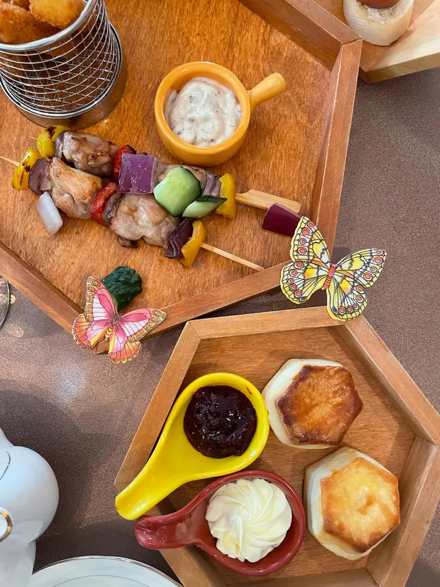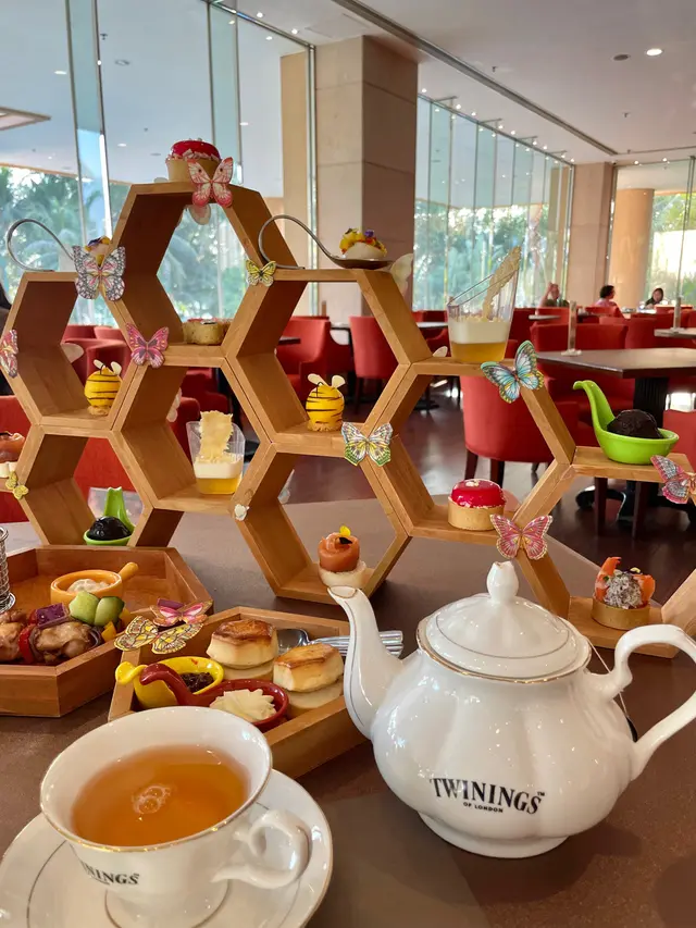 「奶龍夏日運動會」主題下午茶相當有驚喜!我自問唔係個鍾意high tea嘅人,但呢個奶龍下午茶真係驚喜到我! 份量好足之餘味道都好好!蛋糕都唔會太甜~~蛋糕﹑食物用蜂巢形狀擺架好好睇之餘,D野食都好好食!! 就連平時唔鍾意食scone好怕乾爭爭嘅我都覺得好OK另外個青提子配brie cheese黑松露多士﹑Lemon tart﹑Opera cake都好好食! 份量仲非常足又好夠飽! 餐廳仲準備咗奶龍公仔陪住你打卡,小朋友都食得好開心呀~~…查看更多
