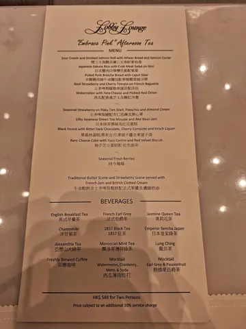 说到酒店下午茶大家必定想到Afternoon Tea Set的三层架!但其实一件饼加杯靓茶也是下午茶的好选择哦。天气不稳的一个下午人在尖东InterContinental Grand Stanford Hong Kong附近,雨忽然下得凶狠即跟好友跑入酒店避雨!看见Lobby Lounge放上了饼柜还可以舒舒服服堂食,即时找个靓位跟好友倾倾计叹个甜蜜下午茶。内里已坐满很多客人生意不俗呢!幸运地剩下一张两人台刚好可以安座叹茶。走到饼柜看看有什么选择第一眼便盯上了这件陈皮曲奇饼!另外杂莓丹麦酥和意式芝士饼看下去也非常吸引,决定全部点过来参与我们的Sweet Tea Time。点好甜品后回到座位上选好喜欢的靓茶,不消一会靓女服务员便会将甜点及茶送上。天阴阴来一桌甜美的茶点即时带来了生气!令纳闷的下雨天亦变得多姿多彩劲吸引。率先品尝我最为期待的Tangerine Cookie陈皮曲奇$38/件!这件曲奇拿上手非常足秤相信吃罢会超级满足。一口咬下去曲奇的质感是外脆内软的那款!甘香的陈皮味道非常出色还带上点点花生酱的香气,加上口感丰富的夏威夷果仁及可可碎粒是我喜欢的味道和质感。喜欢吃丹麦酥的我任性地点多一件Berry Danish杂莓丹麦酥$98!颜色活泼的杂莓铺满在香口丹麦酥饼上,配搭甜美可人的草莓朱古力忌廉吃得我心花怒放耶。最后还有酒店非常出色的Tiramisu意式芝士饼$88,浓厚的Mascarpone Cream口感细滑不带腻感,手指饼索满了咖啡及咖啡酒的香气超迷人,这个组合完完全全是我的菜甘心情愿送上宝贵的Quota。最后叹埋杯摩洛哥薄荷茶$60便打道回府,这天我满足的连晚餐也没办法享用呢哈哈。…查看更多