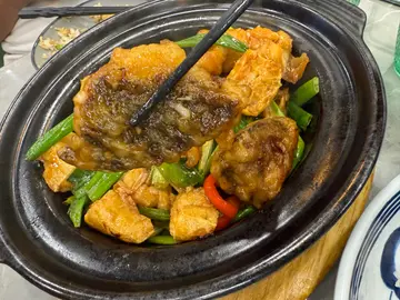 环境舒适,餐牌中多选择,是午餐晚餐嘅一个唔错嘅选择惹味豆卜斑头腩煲一打开煲盖,蒸气腾出,证明火喉一流。斑头腩的肉质鲜嫩,肉质紧实,无腥味。经过与豆卜、生姜、大蒜、香葱等调味料慢火煲煮,头腩及豆卜都吸收了调味精华,带微辣,配白饭岩哂烧味双拼饭(香妃鸡,烧腩)烧腩外皮炸得金黄酥脆,肉质内嫩,配上烧腩的肥瘦相间,口感层次分明。鸡肉外皮呈金黄色,肉质滑嫩。烧味上淋的特制酱汁香气四溢,甜中带咸,提升了整体的风味,让饭更加美味。冻饮柠檬茶柠檬的酸味与茶的香气结合,让人感到清爽,特别适合解渴