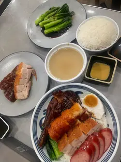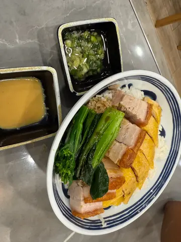 大壹烧鹅专攻港式烧味嘅食肆,除咗烧鹅,烧腩仔系我fav,屋企加𩠌成日买五宝饭(烧鹅、叉烧、烧腩、红肠、咸蛋)呢个五宝饭可以话系招牌之作,一碟饭集齐咁多种港式烧味,份量十足。鹅肉皮脆肉香,火候掌握得宜,油脂香味瞬间在口腔爆发。叉烧:色泽红亮,半肥瘦,叉烧带有轻微嘅蜜糖焦香,肉质软腍而不韧,每一口都有丰富嘅层次感。烧腩仔:绝对系呢碟饭嘅亮点!腩仔皮脆得令人难忘,咬落去发出清脆嘅声响,皮下脂肪层次分明,肥瘦相间,入口即溶。烧腩仔嘅脆皮功夫确实了得,可见师傅嘅手艺精湛。烧鹅全餐(烧鹅配烧腩、油菜、例汤)呢个套餐可以更深入地品尝烧鹅同烧腩嘅精髓。油菜:清爽嘅油菜正好平衡咗烧味嘅厚重,菜心爽脆,调味适中,起到很好嘅解腻作用。例汤:帮助清洁味蕾,为品尝烧味做好准备。大壹烧鹅嘅烧腩仔脆皮功夫确实值得称赞,师傅对火候嘅控制相当精准。五宝饭就适合想一次过品尝多种烧味嘅食客;而烧鹅全餐则更适合专注品尝烧鹅同烧腩嘅精髓。
