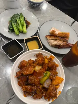 今次我地放假就去左马鞍山呢边行下海边又行下商场咁,呢区都成日比人话美食沙漠,黎呢度食野真系要问下人有咩好食,有friend就介绍左呢间烧味店话好食,佢地有小菜食,咁就黎试下✌🏻佢系新港城中心商场要再过多条桥先到,黎到劲多人等位,睇人流咁多就觉得放心,餐厅入面就好似茶餐厅格局,都系卡位👍🏻烧鹅下庄($168)烧鹅下庄都几大份,因为多人食佢系新鲜出炉,见住佢拎出黎挂几只上去个架度,皮脆肉嫩啖啖肉😋啫啫通菜煲($118)呢个通菜煲佢系炒好个菜再系你面前放入个热煲度炒多几下,香喷喷好惹味又有镬气🥬生炸BB鸽($68)生炸BB鸽都唔系好BB,佢size都正常,炸得好脆,个鸽肉又唔会太干☺️椒盐七味豆腐($78)个豆腐大大粒,亦做到外脆内软既口感,椒盐既份量都足够😄蚝仔粥(一窝)($128)窝蚝仔粥劲大窝,应该够4个人食,我3个人食到好饱都食得晒,蚝仔大只冇腥味🦪呢间餐厅我觉得系几出色,佢咁旺场真系有原因,成餐饭都好有大排档feel,野食都系有质素,坐得比大排档更舒服,黎马鞍山唔洗惊冇好野食啦😉…查看更多