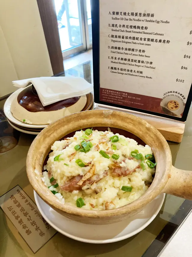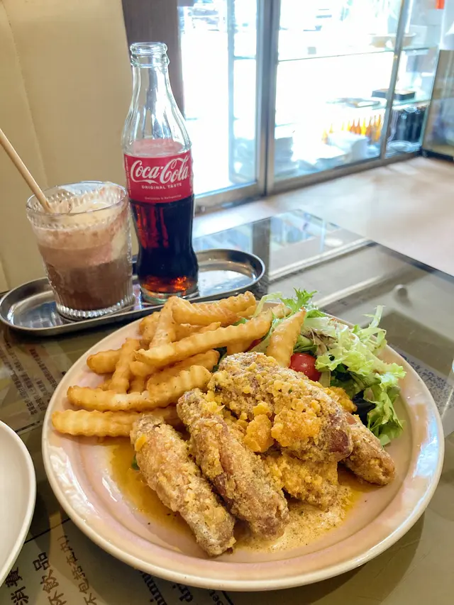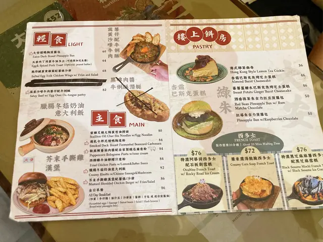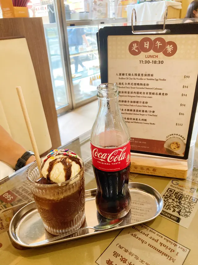 今日撞正要去油麻地辦事,甘岩搵到個好地方醫肚,雖然餐廳的門面比較「舊」而不起眼,但再細看才知道餐廳內有乾坤,其實係上一手舊有的茶餐廳業主要移民,好彩店舖最後得到一班年青人承繼後再沿用店名去經營,但就將內部格局由茶餐廳轉變成為當下潮流的西式Cafe。門外特意保留50年代舊有茶餐廳風格,至於內部的裝潢、間隔、卡座、水吧位置和餐牌都很有跨時代的風味,非常有特色。今日帶埋囡囡肥甄過嚟一齊食午餐,連佢都感受到餐廳的內部設計和一般的西餐廳感覺很不一樣,令人耳目一新。西檸雞牛油檸檬汁意粉($84)將牛油加入意粉水乳化,過程中就算無落忌廉都可以令質地好似忌廉一樣咁Creamy,而且意粉充滿住牛油香,再加上檸檬汁甜甜酸酸,彈牙口感又夠fresh。西檸雞肉質嫩嫩不嚡口,同樣帶點酸酸的味道,整體係一道適合夏日的fusion菜。臘腸冬菇奶油意大利飯 ($92)中式煲仔飯就食得多,但今次竟然內裡係裝住既係臘腸冬菇奶油意大利飯。充滿奶油的creamy柔滑的味道,但意大利飯有D被瓦煲焗得偏淋,米粒中未有帶點煙韌的嚼口,口感卻不失不失。雖然加上臘腸帶有點點油香,但整體偏淡口,個人始終偏向喜愛煲仔飯有種甜豉油咸香和焦香的口感。若然煲仔飯能加多點中式的特色會更好。脆炸鹹蛋黃雞翼配薯條沙律($68)雖然寫明係輕食,但份量一啲都唔輕,肥美大隻的炸雞翼,炸得恰到好處,表面沾滿咸香脆口的鹹蛋黃,再配埋炸薯條,新鮮熱辣辣甘炸起、邪惡滿分。一碟就有六隻炸雞翼,一定要同人哋share,邊可以「自肥」架。薑汁撞奶麻糬蛋撻($28)用了香港品牌的十字牌牛奶調製而成,非常有香港特色。雖然薑汁的味道較淡而不辣,反而牛奶的奶味相對較突出,小朋友都會鍾意。重點係麻糬做得非常厚身,口感煙煙韌韌,同脆口的曲奇蛋撻底非常配合。凍兒童鴛鴦 ($46)用阿華田同好立克沖泡而成的兒童鴛鴦,兩款口味都咁好味,又冇咖啡因成份,表面再灑上阿華田粉和燕麥碎大大增加口感,肥甄當然難以抗拒。啡立刻(凍$50)咖啡加入好立克的小玩意,雖然習慣飲開齋啡的我,好驚咖啡味唔夠強,好彩詢問一下員工,原來咖啡係用Double shot,雖然第一下飲落去,好立克味會比較強,但之後咖啡的甘香就慢慢滲出黎。黑牛($48)黑牛係八十年代初香港特色飲品。雖然唔係我出生嘅年代,但係起我細細個都仲記得有可樂玻璃樽飲。今次難得有得再點返,仲要係經典版的玻璃樽可樂,再加埋一球冰凍的維記雲呢拿味雪糕同Sparkling朱古力脆脆,童年回憶就返晒嚟。杏霜巴斯克焦烤芝士蛋糕($46)蛋糕做得好厚身,中間的軟心做得超出色,creamy柔滑,杏霜的味道真係超突出,一下子就籠罩住整個味蕾。愛杏霜的人一定要試。不過個人唔太受得杏霜的味道,反而加埋碟旁的碎曲奇,味道平衡返又接受到喎。大安茶冰廳油麻地廣東道830號地舖…查看更多