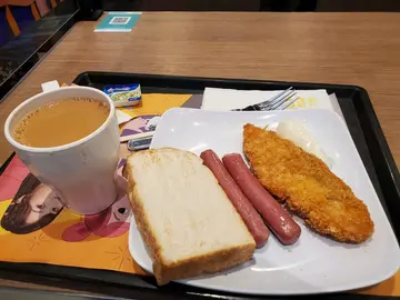放假唔想煮早餐,又想食得放d, 去食快餐最好不过!好耐冇食, 见餐牌甘多款,又中式又西式,西式又鱼柳, 鸡扒, 猪扒,烟肉蛋.... 真系选择困难症上身, 最终决定食邪恶厚切餐肉炒蛋,再加$7要个雪菜肉丝米, 用支付宝有得减$3,抵!唔洗交飞,不过好快就见出number, 大大份早餐又出晒烟,唔错! 拎返位有d重, 做好消毒可以开餐主角餐肉有两块, 好厚, 煎左唔系好"火农", 咬落口好满足,又香又够厚,够晒邪恶,自已煮一定唔会甘放纵,haa炒蛋火候岩岩好, 几滑, 多士刚烘好, 热热, 好味雪菜米d米粉就一般,下次都系要通粉好d…查看更多