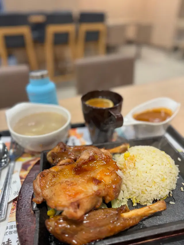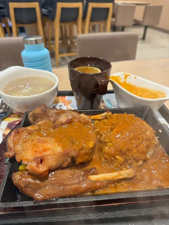 今日陪屋企人入「港安醫院🏥」醫院附近冇嘢食🥲,唯有行過嚟荃灣中心呢邊,過到嚟其實餐廳選擇都冇乜….所以最後決定食大家樂,因為見好似最穩陣👉🏻👈🏻Order 咗蘋果豬串骨。香橙雞扒鐵板餐$67原先餐係跟羅宋湯,但係我就選咗轉中湯(花生眉豆節瓜豬骨湯)餐汁就配咗‘黑椒汁’🖤餐飲就飲🍋熱檸檬茶💛豬骨同雞扒切落去都軟腍,味道保持大家樂嘅水準,冇乜特別😹鐵板上仲配咗蛋炒飯同埋一啲蔬菜🥬餐廳座位,都坐得闊落嘅。…查看更多