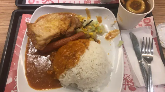 今日天氣寒冷,所以lunch是但落樓下大家樂買外賣就算啦。見到餐單有個每週驚喜幾抵食,都係$39,所以就叫左黎食。呢個飯餐係一個吉列豬扒飯,塊吉列豬扒如圖中所見個Size算係巨大Size,夠食夠送飯有餘,個外皮都炸得好脆口,仲要我呢塊係沒有骨架,真係啖啖肉。而佢配合既係肉醬意粉既汁,用肉醬意粉汁撈飯幾新奇,酸酸甜甜又幾好味,仲有d肉碎有咬口。天氣咁凍,餐飲就叫左杯熱意式咖啡,在大家樂而言,呢杯咖啡比普通咖啡濃味D架。…查看更多