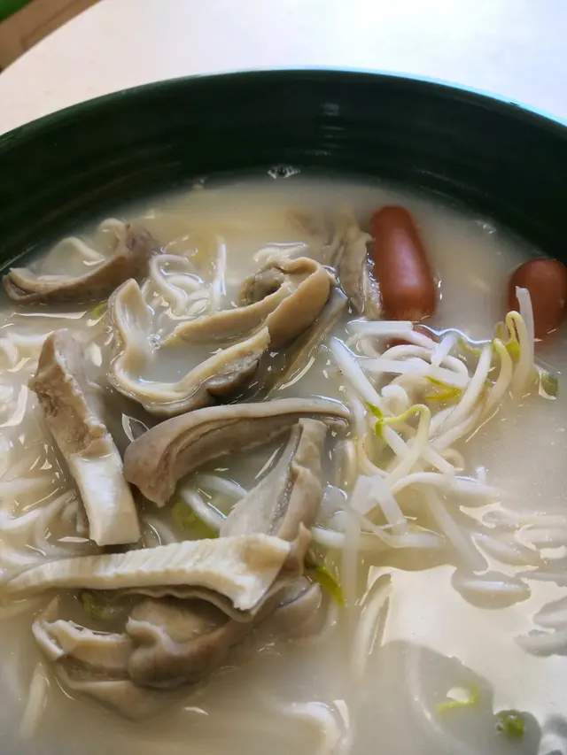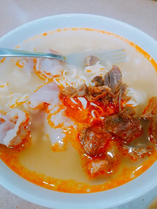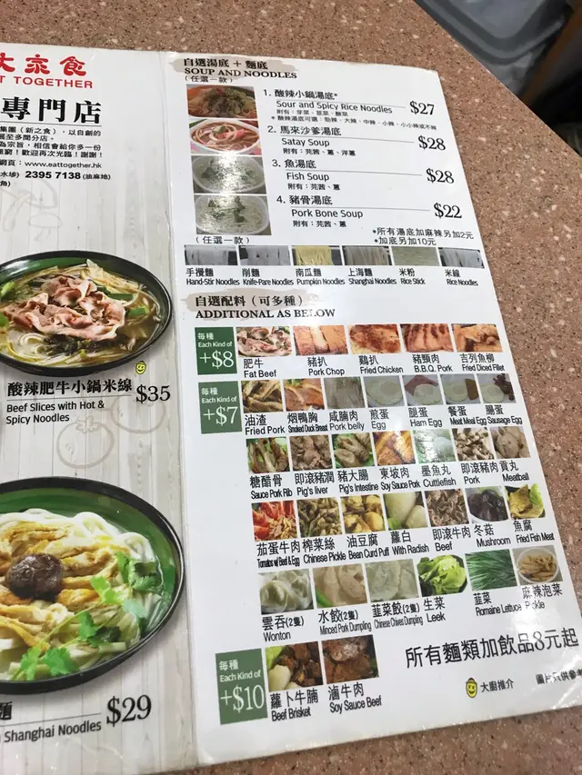 話說我早前在上海街吃過一個過山雞麵套餐,其味無窮。今天身在在旺角,突然過山雞癮起,立刻搜尋附近的大家食店,看見就在左近,大喜,光顧之。點的和上次在「平頭裝」大家食店很接近,豬油渣東玻肉手攪麵,唯獨發現和當天看見的餐牌完全不一樣,心知不妙,到麵上桌才知中伏。豬油渣是比「平頭裝」好吃的,炸脆之後放湯,亦盡是豬油部份,不像「平頭裝」的像湯渣一樣。東玻肉也確是很肥,雖味道一般,但不能嫌它肥吧,這年頭能找到肥的豬肉不容易。湯乃一麵之魂,酸辣湯的湯底就不敢恭維了,像用水開出來一樣。做法也像車仔麵,放麵、倒湯、加餸。這和「平頭裝」的和配料一起煮味道有天淵之別。本以為店名一樣是同一家店,誰知道就如「阿龍」、「譚仔」一樣,不吃不知道,以後得認住「平頭裝」才光顧。…查看更多